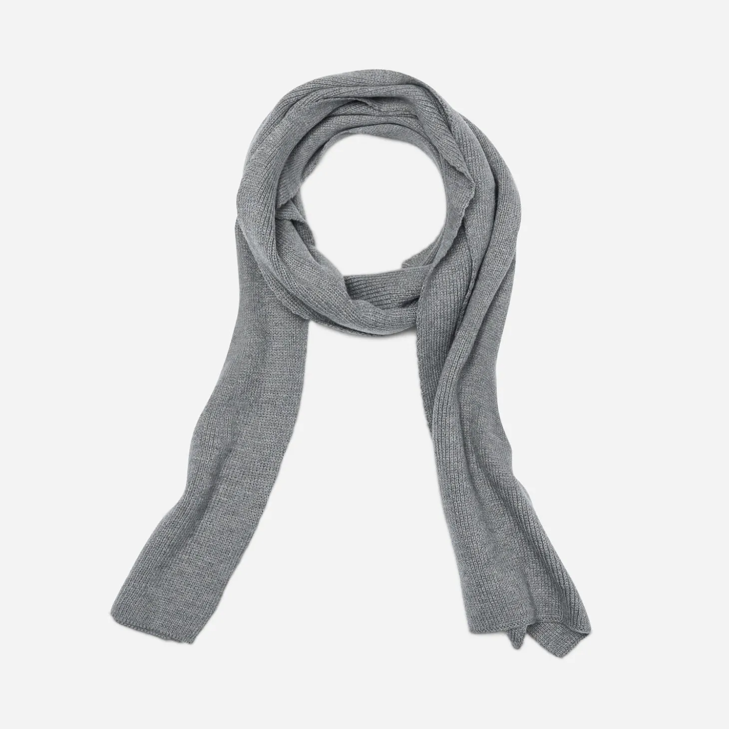 Réchauffez vos looks d’hiver avec sobriété. Posez l’écharpe gris chiné en tricot sur vos costumes en ton sur ton, ou sur un pull col roulé beige, un jean gris et une parka kaki.