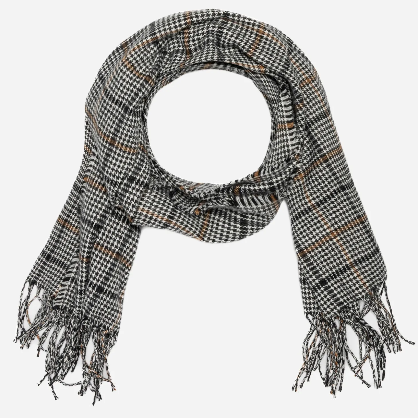 Motif prince-de-galles sur fond noir et blanc, avec lignes camel, l’étole réchauffe le vestiaire masculin. En 100% acrylique, elle séduit par sa douceur et sa facilité d’entretien.