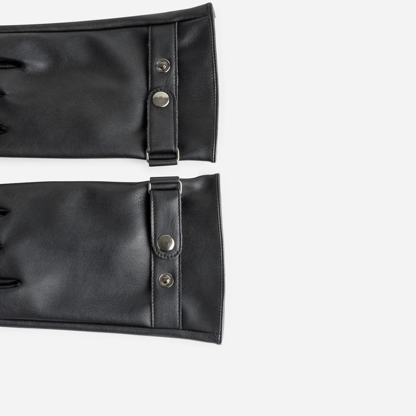 Parfaite imitation cuir pour ces gants pour homme en matière synthétique. Noirs, ils sont finalisés par une patte réglable par pression, positionnée aux poignets. Un modèle à offrir, à s’offrir, pour finaliser les looks d’hiver d’une touche rock.