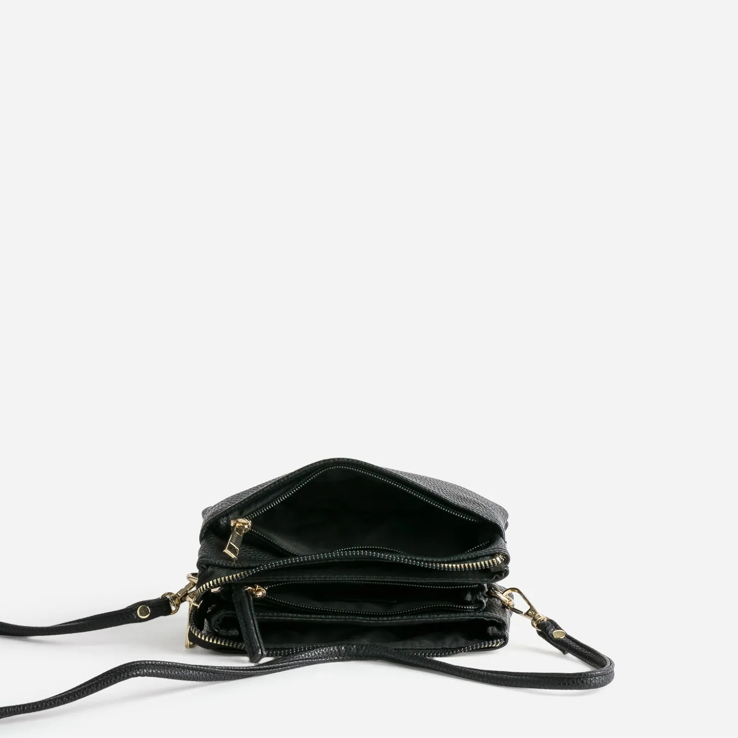 Ne vous fiez pas aux apparences ! Malgré son format mini, pile dans la tendance, ce sac à main multiplie les compartiments, jusqu’à… six ! En matière synthétique avec finition grainée, il se décline en coloris noir. La bandoulière amovible permet un porté sur l’épaule, croisé ou à la main façon pochette. Un accessoire polyvalent, à utiliser pour y glisser ses affaires personnelles comme son make up.