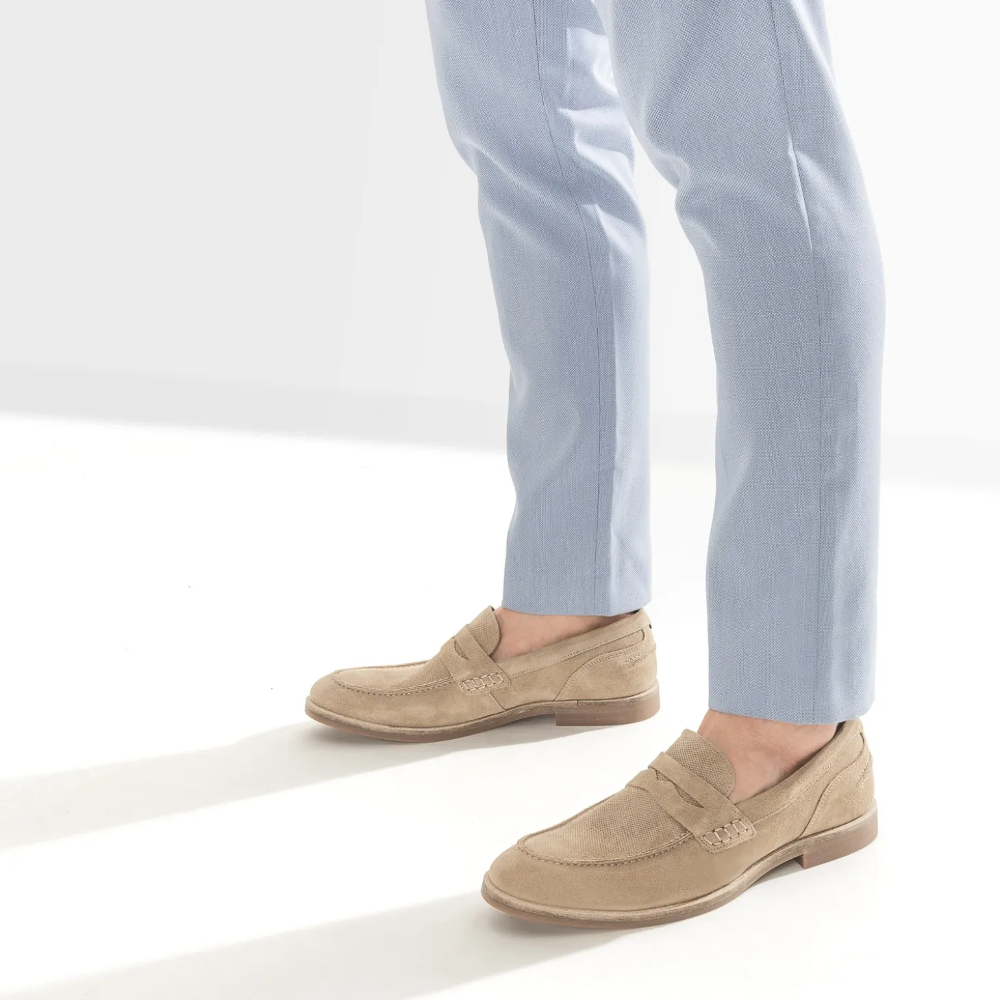 Revoyez les codes du chic, en optant pour le mocassin, dès l’arrivée des beaux jours. Validez le confort du cuir velours, animé d’un embossage sur le dessus du pied. Préservez la sobriété du coloris beige. Découvrez le détail de la doublure bleu marine. Un modèle à porter avec des chaussettes fines dans la même teinte et un costume à carreaux style dandy, ou pied nu avec une chemise et un pantalon en lin dans les teintes naturelles.
