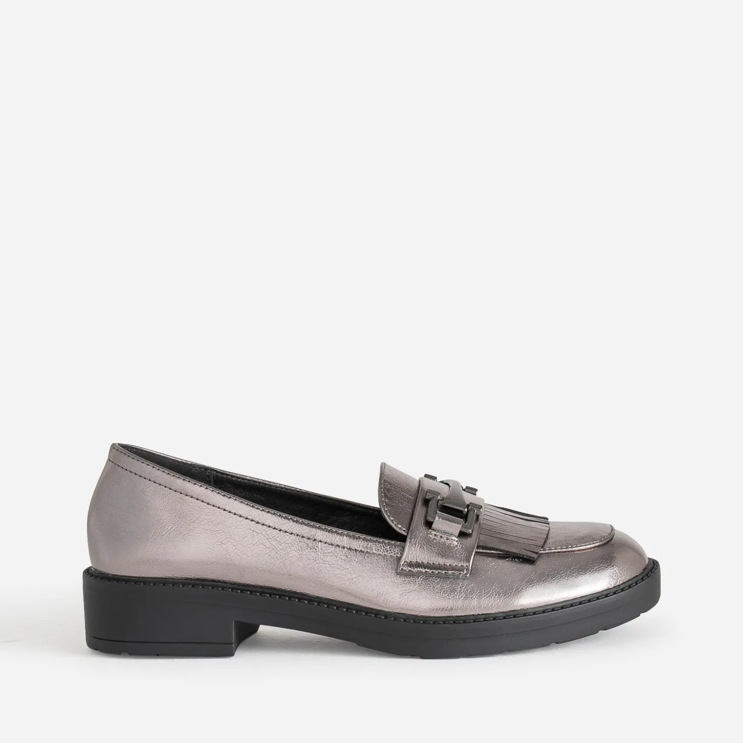 Mocassin gris foncé métallisé à franges