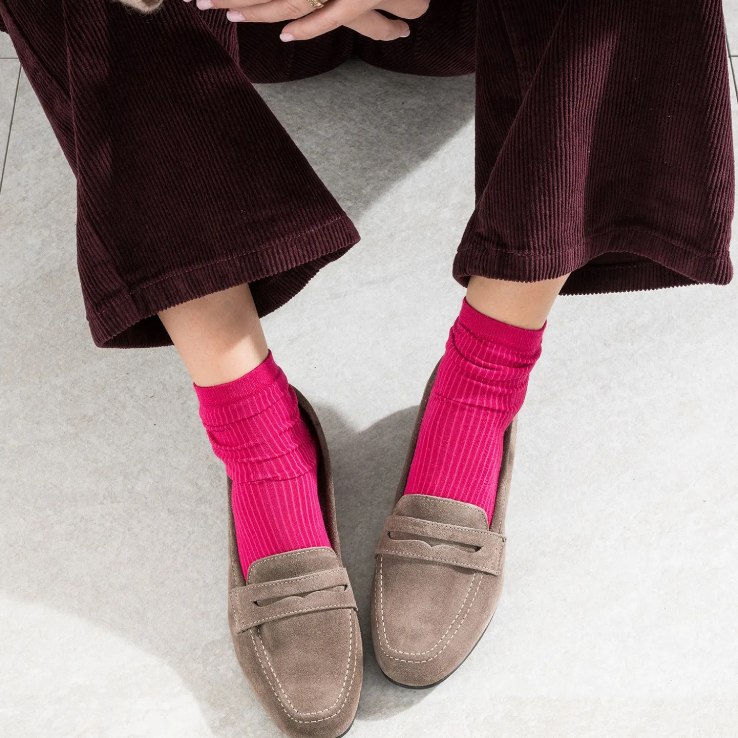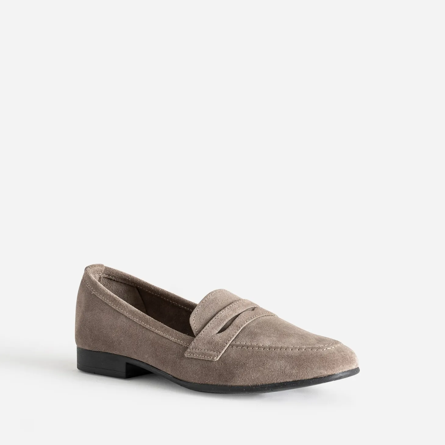 Envie d’une chaussure plate, sobre, classique, idéale pour la mi-saison ? Essayez le mocassin. Coloris taupe, il séduit par son cuir velours tout doux et sa découpe masque placée sur le dessus du pied. Un modèle qui va avec tout. Avec une chemise blanche et un jean mom gris. Avec un costume noir.