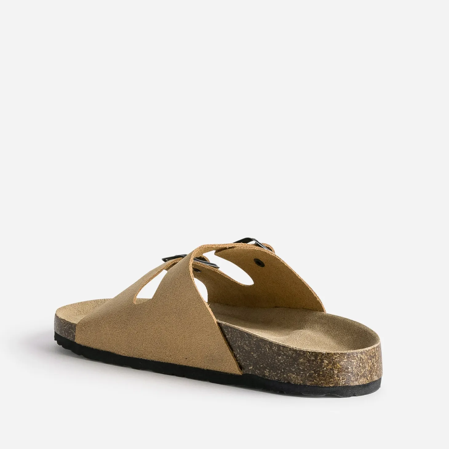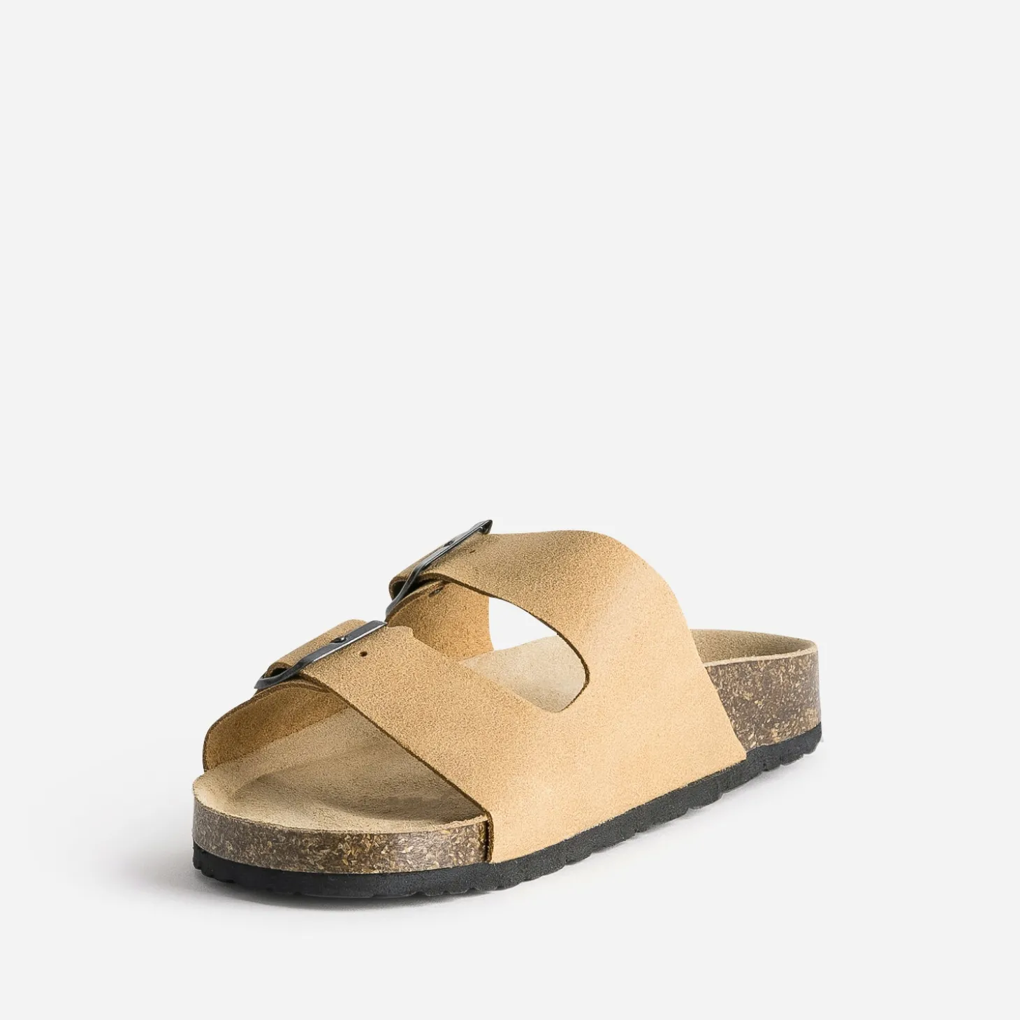 Elevée au rang de it-shoes par le monde de la mode, la mule anatomique est un modèle intemporel. En cuir velours cognac clair, elle est reconnaissable à ses deux brides à boucles métalliques ajustables, montées sur une semelle anatomique également en cuir velours. Un modèle à réserver au week-end et aux tenues décontractées.