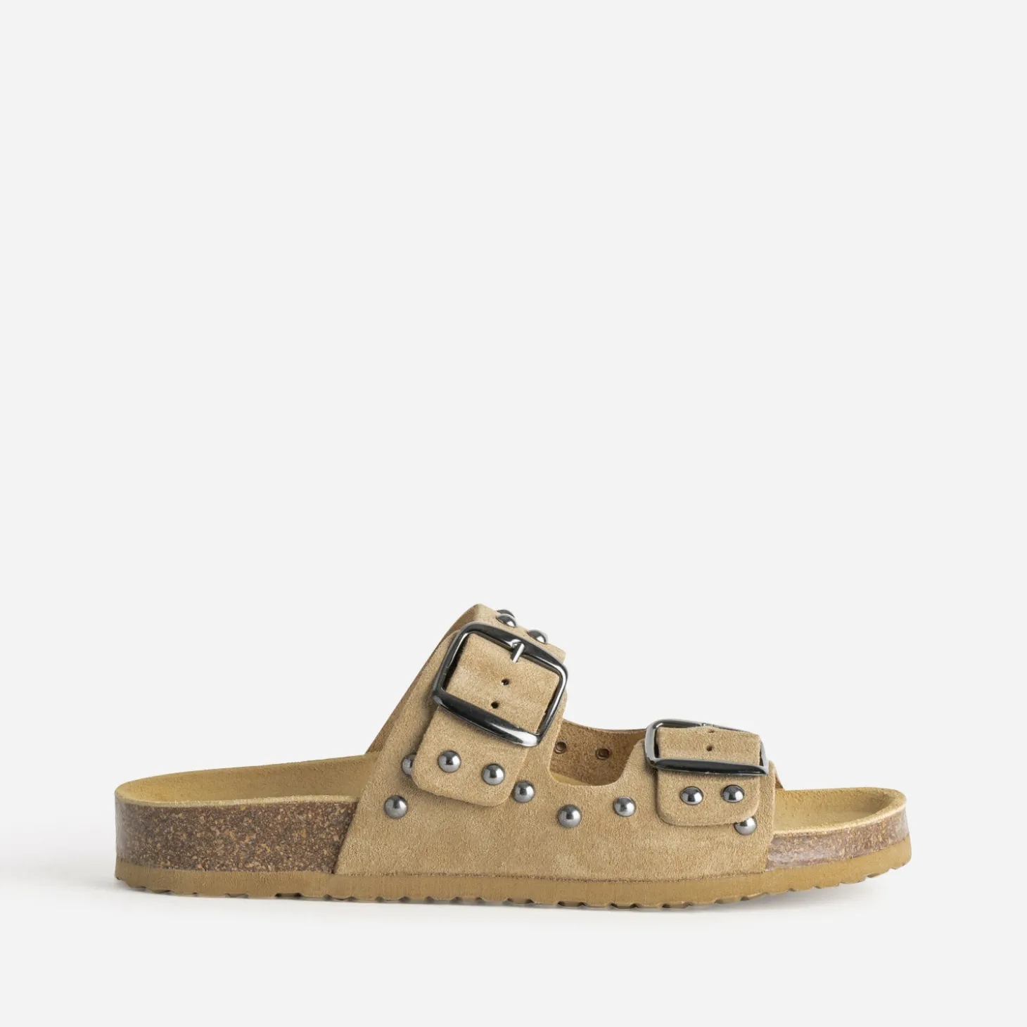 Mule anatomique TEXTO beige cuir velours clouté