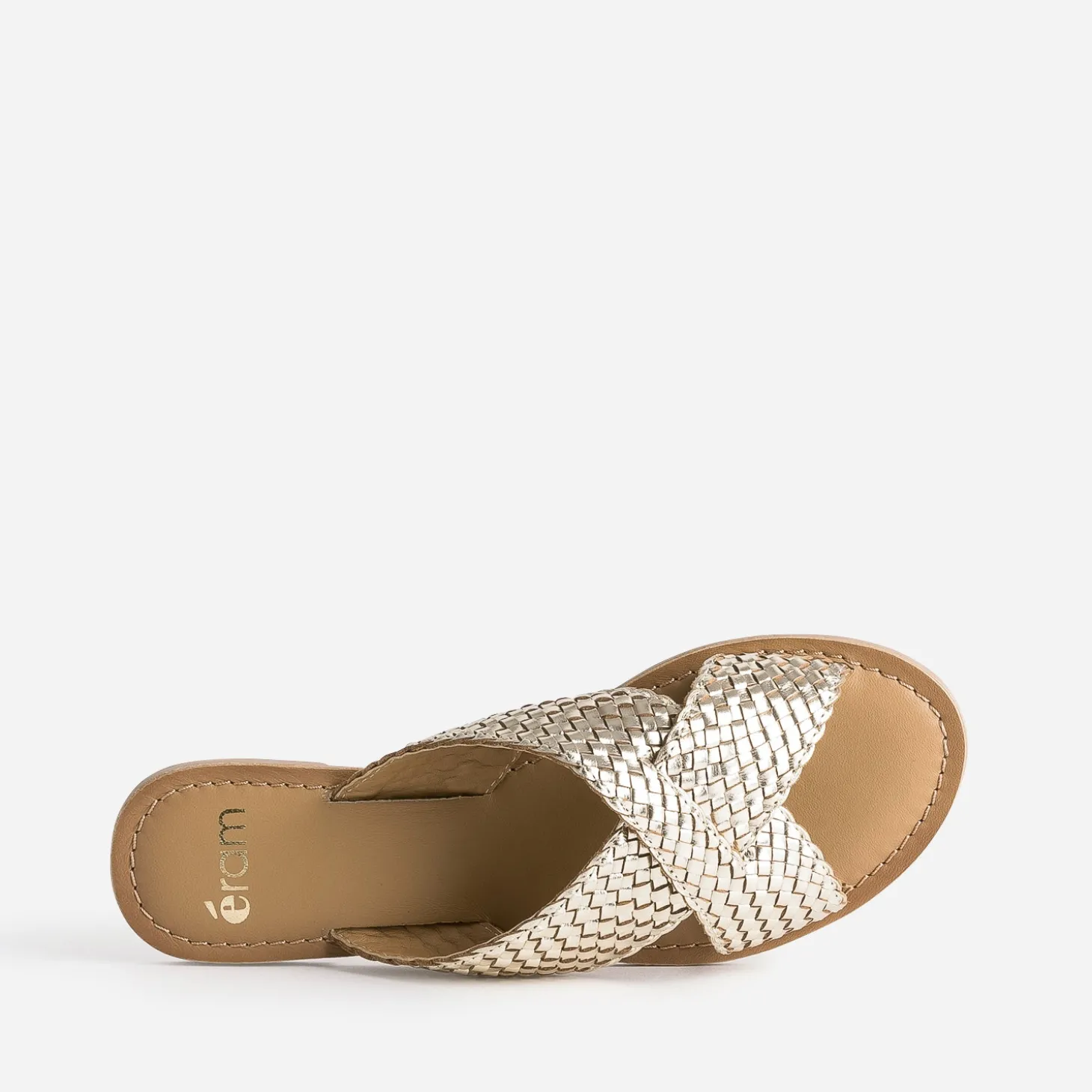 Mule dorée en cuir tressé