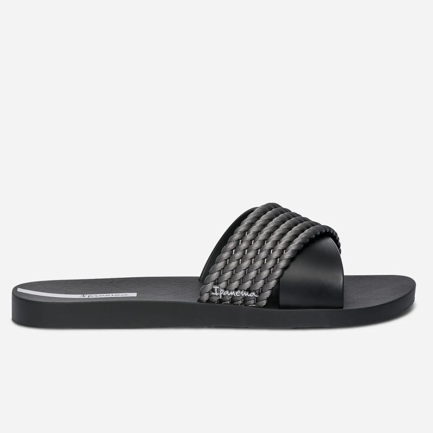 IPANEMA est le nom d’une des plus célèbres plages du monde, située à Rio de Janeiro, au Brésil. Elle inspire le nom d’une marque de sandales et de tongs, portée par le spectacle incroyable des côtes brésiliennes. Cette mule pour femme se démarque par deux larges brides sur le dessus du pied : l’une lisse et l’autre reliefée façon tressage. Un modèle décliné en coloris noir, à privilégier avec un look sportswear ou décontracté.