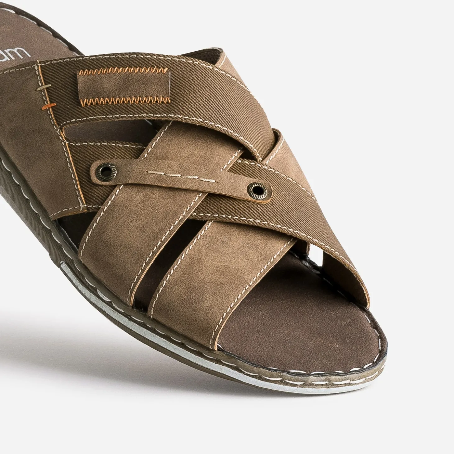 Inspiration nubuck et textile rainuré, cette mule maîtrise les matières synthétiques dans une belle harmonie. Sur le dessus du pied, deux double larges brides se croisent. Un modèle à privilégier avec un look décontracté.