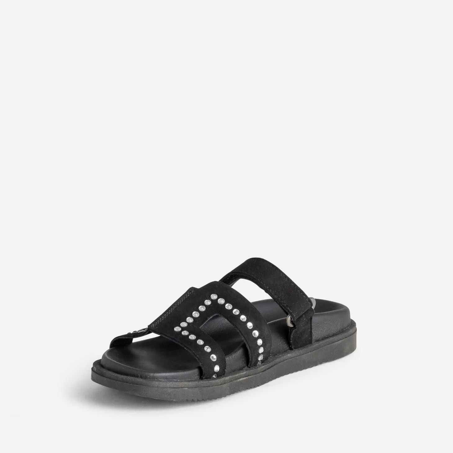 Mule TEXTO noire cuir velours décor strass