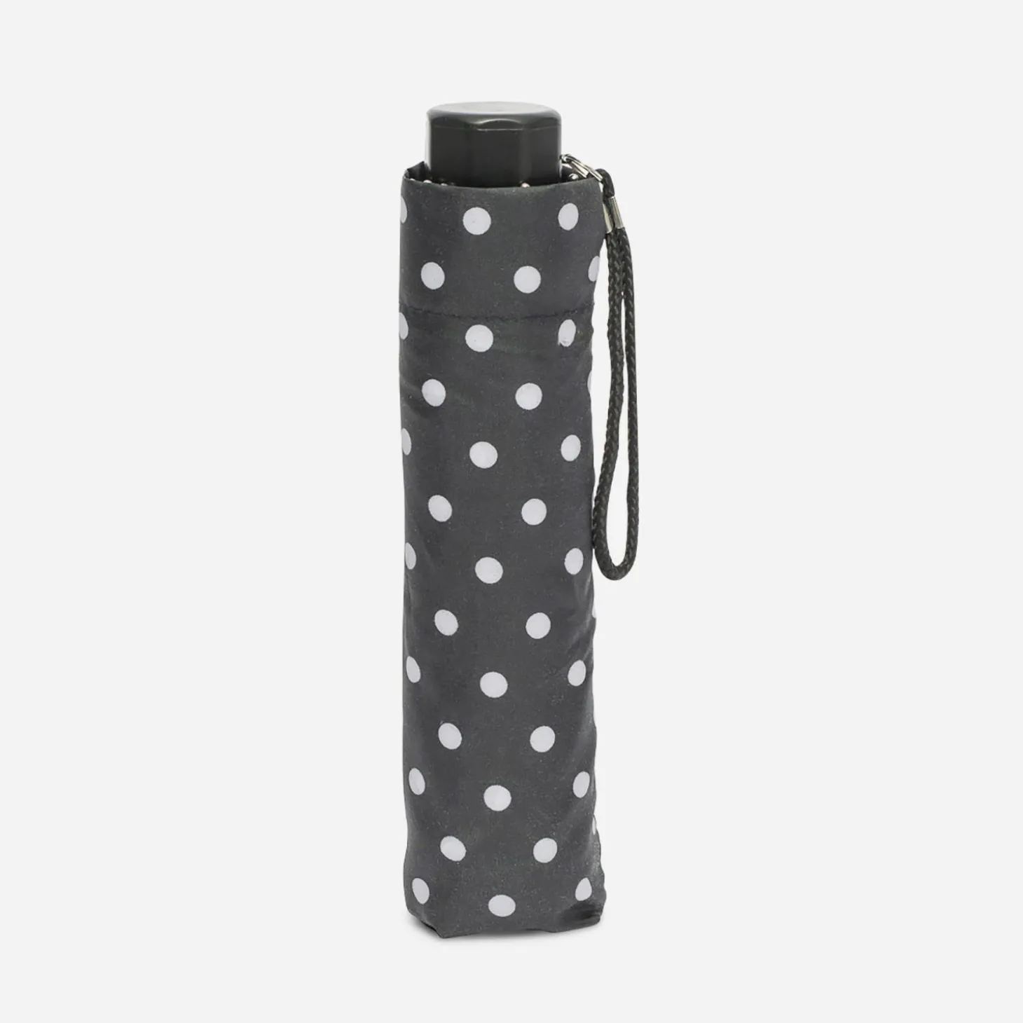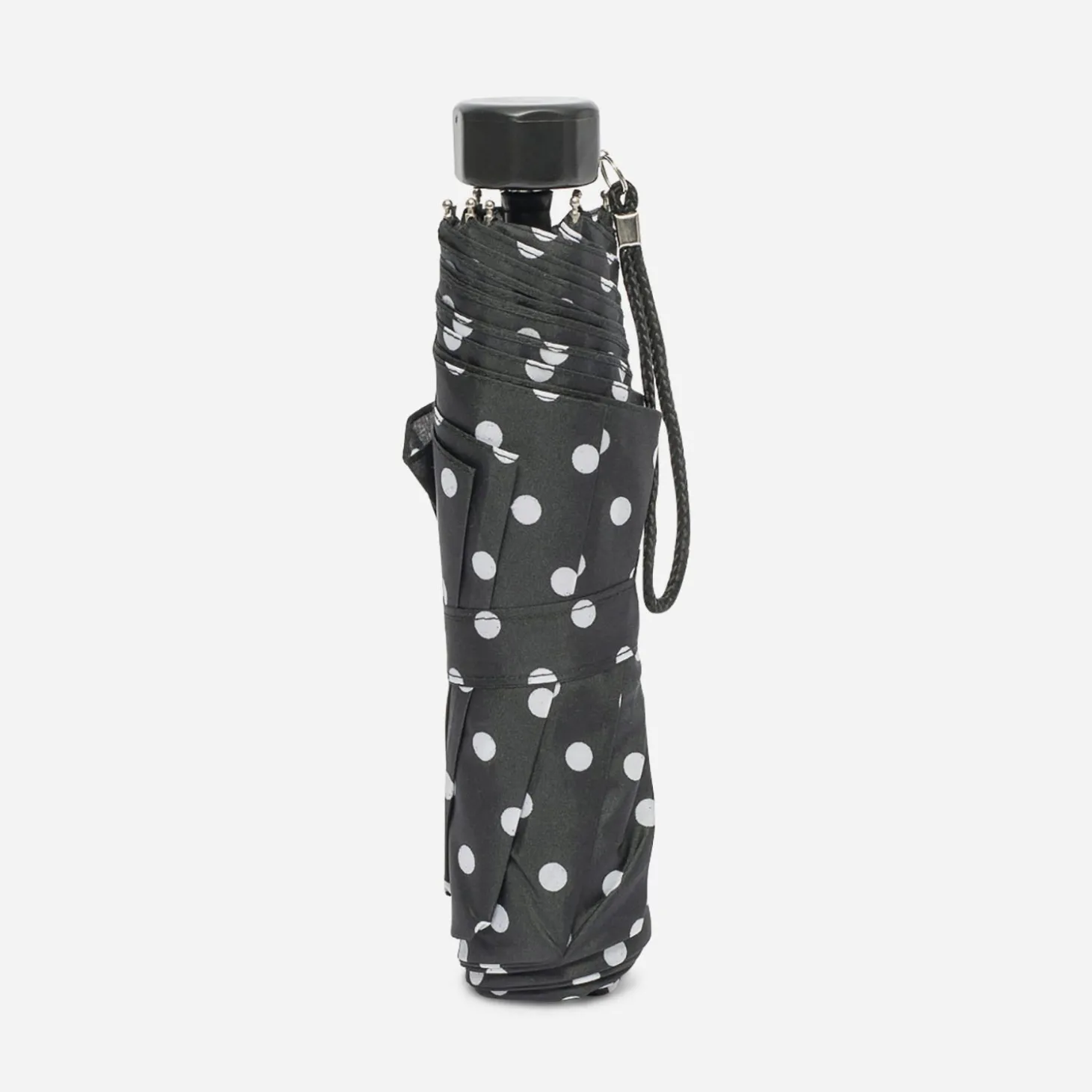 Pour arpenter les rues sans craindre les averses, optez pour ce parapluie noir. Son petit format ultra pratique se glisse dans le sac à main, et son imprimé pois vous assure un petit air rétro au quotidien.
