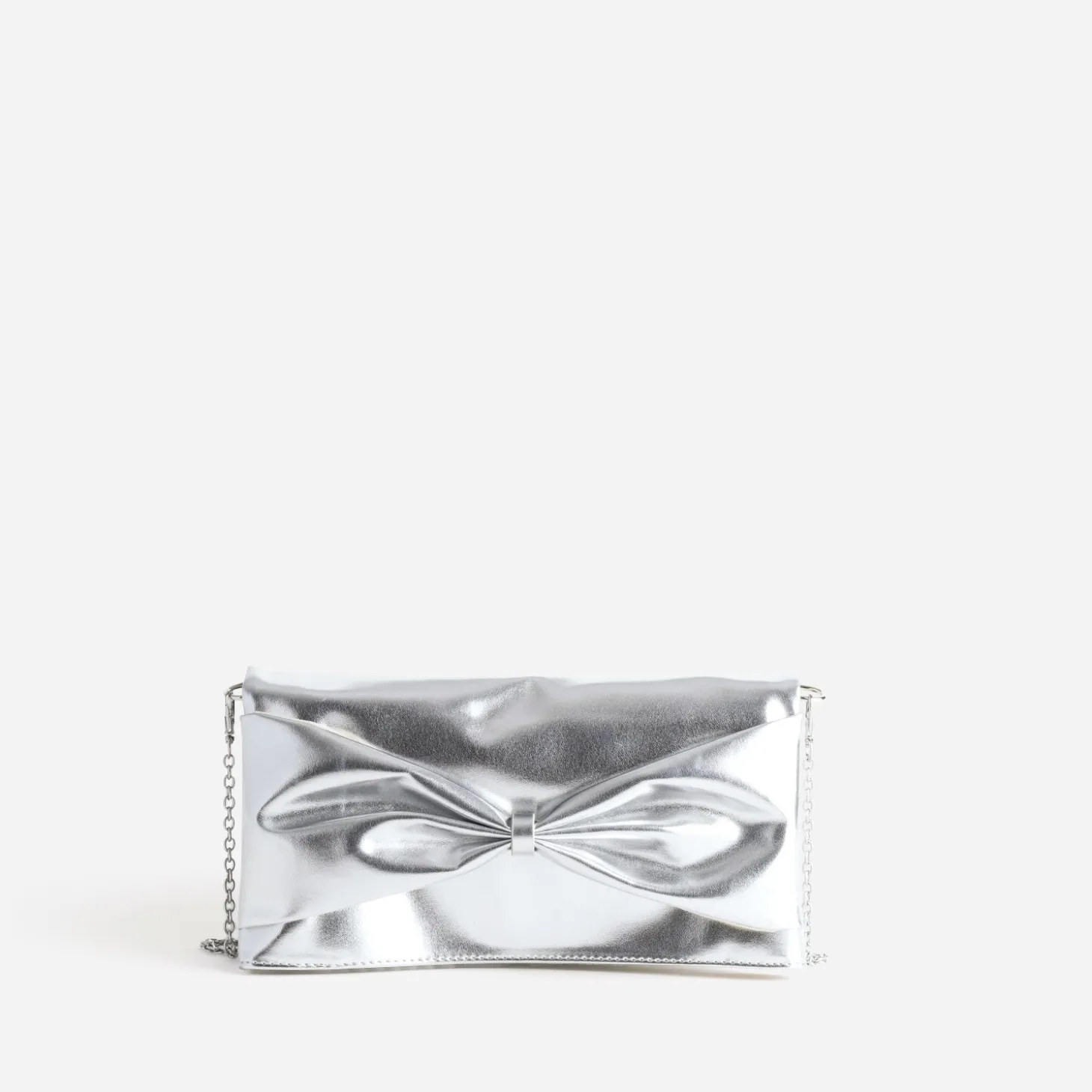 La robe chic, longue, vaporeuse, que l’on aime sortir pour les grandes occasions, mérite une accessoirisation à la hauteur de son élégance. Faites le choix d’un sac de petit format. En matière synthétique lisse, la pochette s’offre un coloris gris argenté. Rectangulaire, elle est dotée d’un maxi nœud sur le devant, pour y glisser la main. Vous préférez un porté sur l’épaule ou croisé sur le buste ? Privilégiez la fine bandoulière amovible façon chaînette en métal gris. Un accessoire très mode, à réserver avec des tons pastel et froids, bleu ciel, vert d’eau, parme.