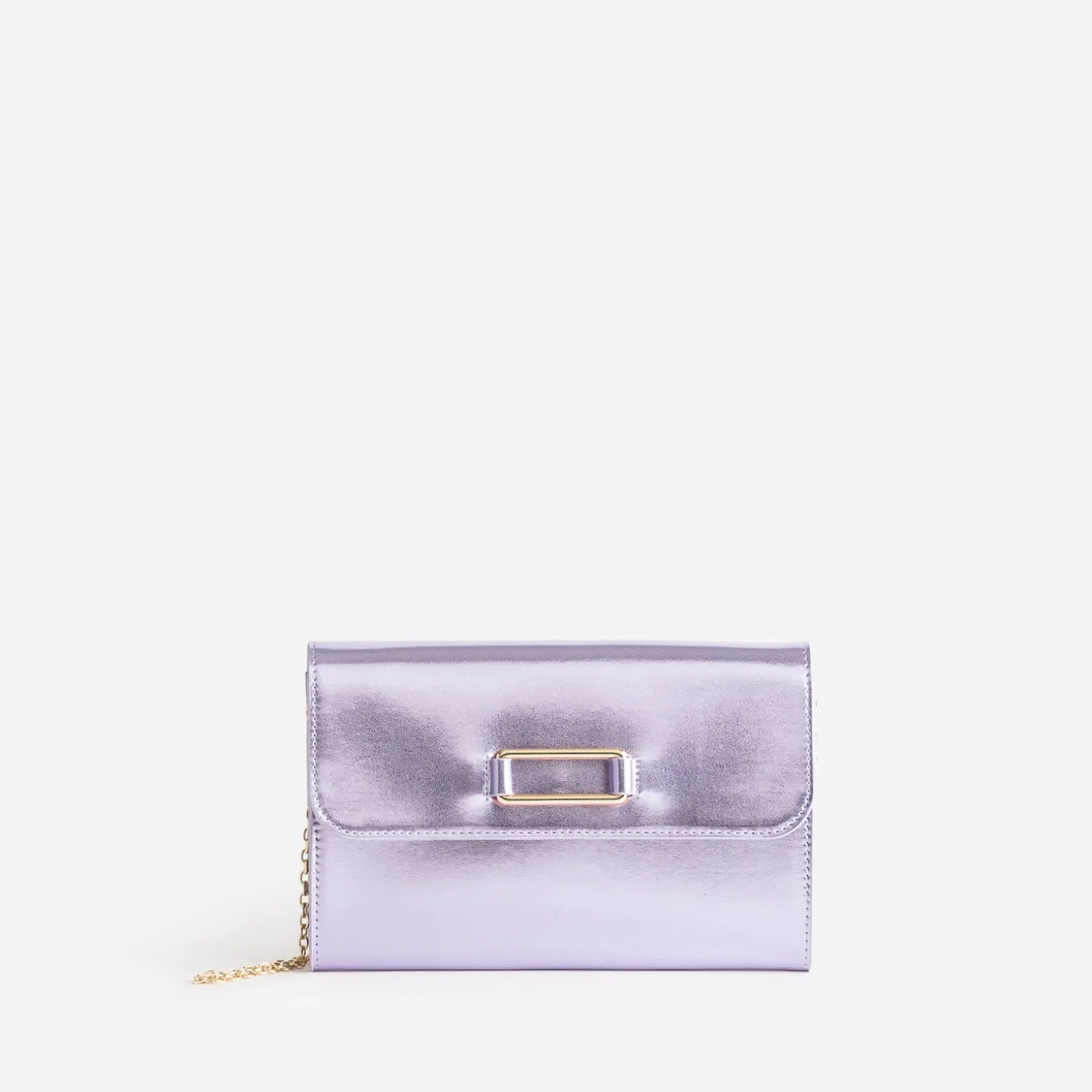La tendance est au sac clutch, reconnaissable à son porté spécifique à la main. Plus accessoire que pratique, il est LE sac parfait pour vous accompagner en soirée, n’accueillant que le strict nécessaire. Découvre-le en format rectangulaire, décliné en version métallisée lilas et signé d’une boucle fixe en métal doré sur le rabat. Il est livré avec une bandoulière-chaînette amovible, pour pouvoir aussi garder les mains libres. Vous avez la pochette : ne reste qu’à trouver la robe longue, dans une teinte assortie, ou un costume de couleur pastel, pour une prochaine cérémonie.
