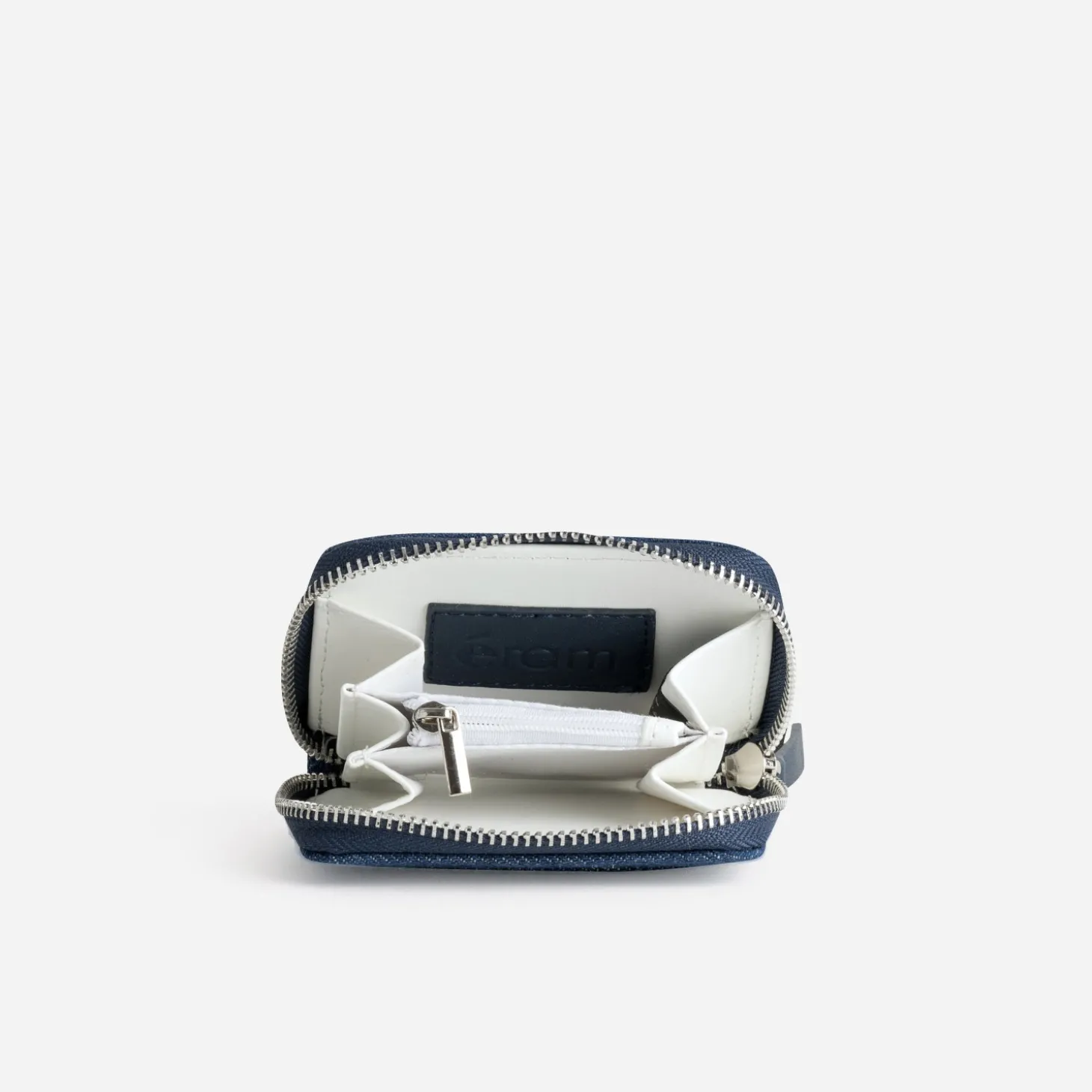 Mini-format pour ce porte-monnaie. En textile inspiration denim brut, il s’ouvre, par zip, sur deux compartiments, avec une poche intérieure zippée. Sur le devant, deux fentes accueillent les cartes (de transport, de crédit, de cantine). Un accessoire facile à glisser dans un sac à main, ou la poche d’une veste.