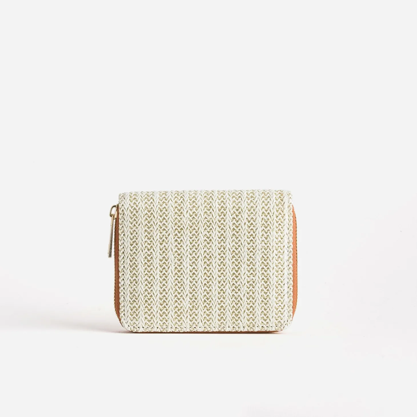 Jeu de tressage beige et doré d’inspiration bohème, pour ce petit portefeuille femme. A l’intérieur, twisté de camel, monnaie et cartes trouvent place dans des compartiments étudiés. Un accessoire à garder à portée de main, dans son sac.