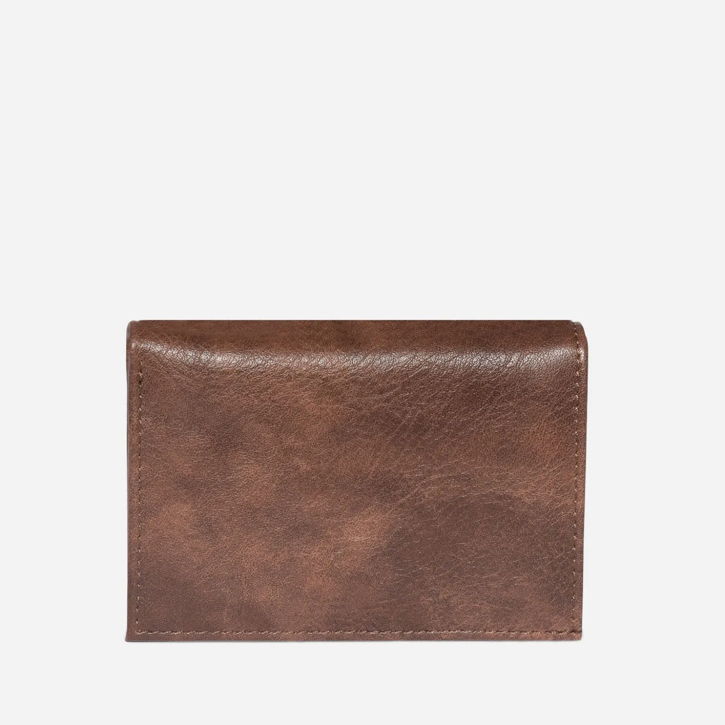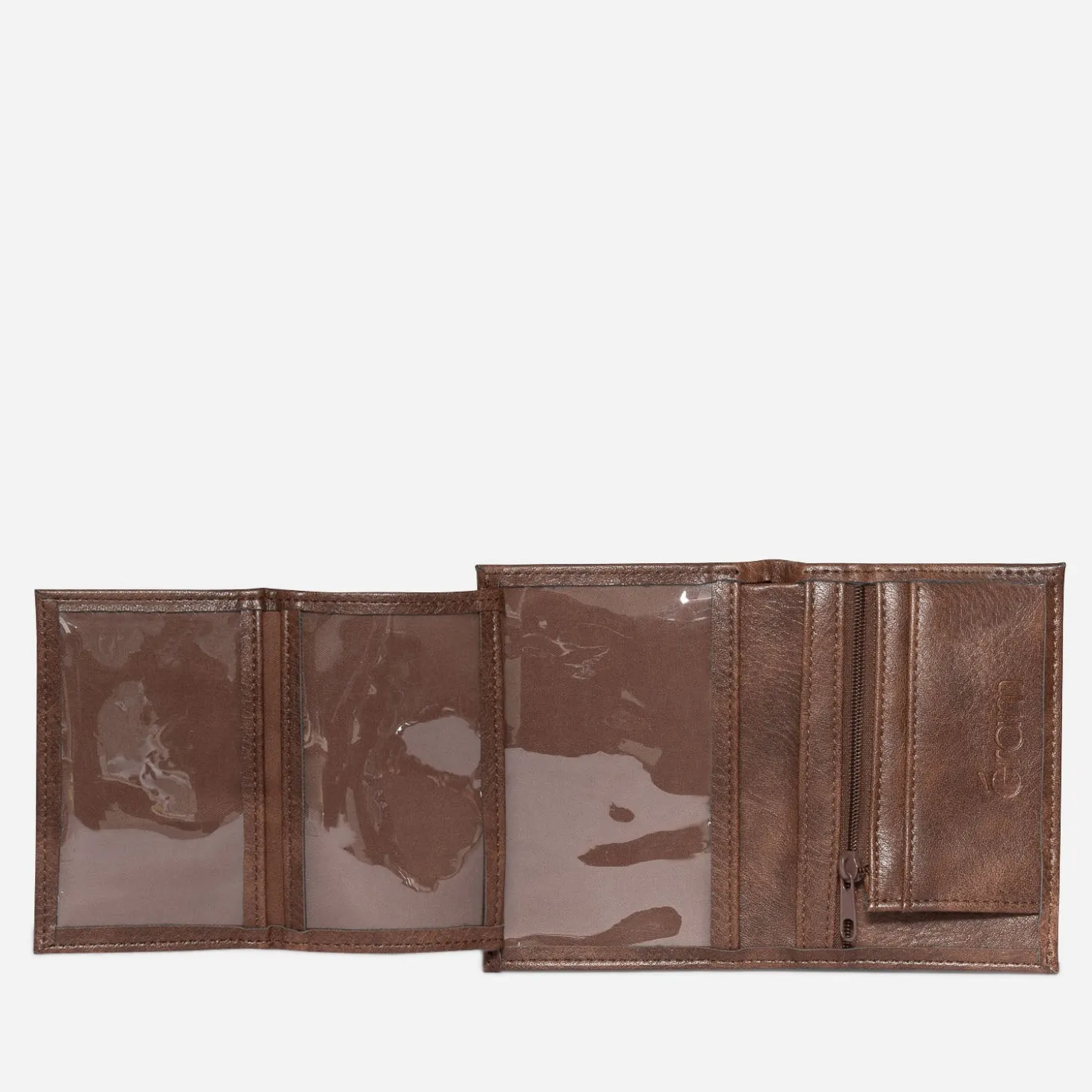 Pièces de monnaie, billets, papiers d’identité, photos et cartes. Ne cherchez plus. Ce portefeuille est l’accessoire parfait pour tout ranger parfaitement à sa place. En matière synthétique lisse, il mise sur la sobriété, par un coloris marron, par l’absence de fermeture et par un format moyen, idéal pour se glisser dans une poche.