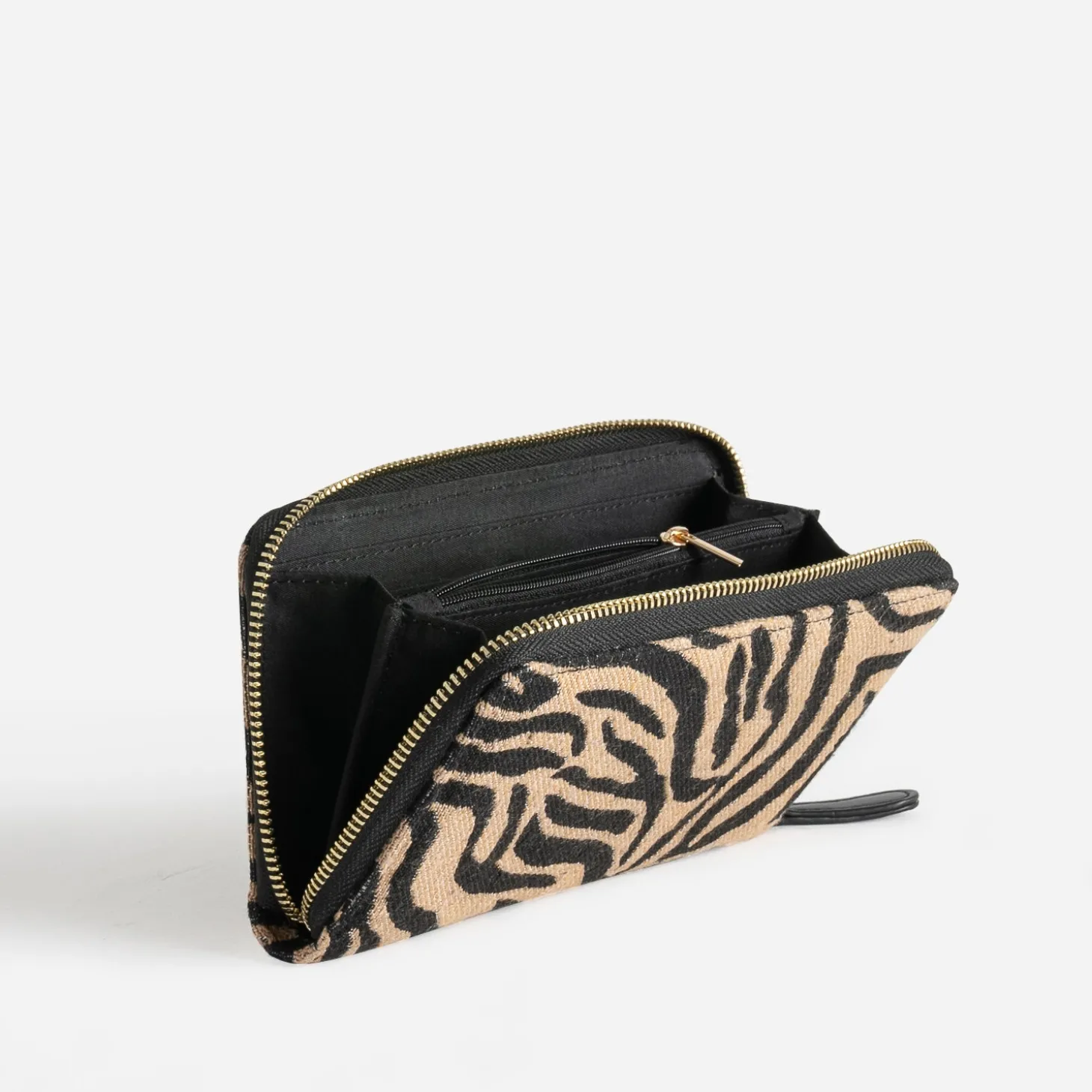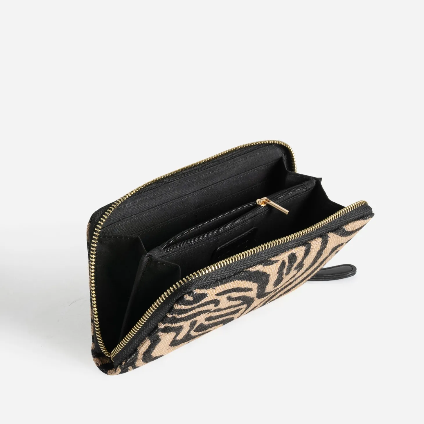 Et le portefeuille devenait un accessoire mode incontournable ? Animé d’un motif zèbre noir sur textile camel, il s’autorise un grand format, pour ranger vos cartes, billets et monnaie. Un modèle à assortir, pourquoi pas, au cabas, sac-banane ou bob assortis.