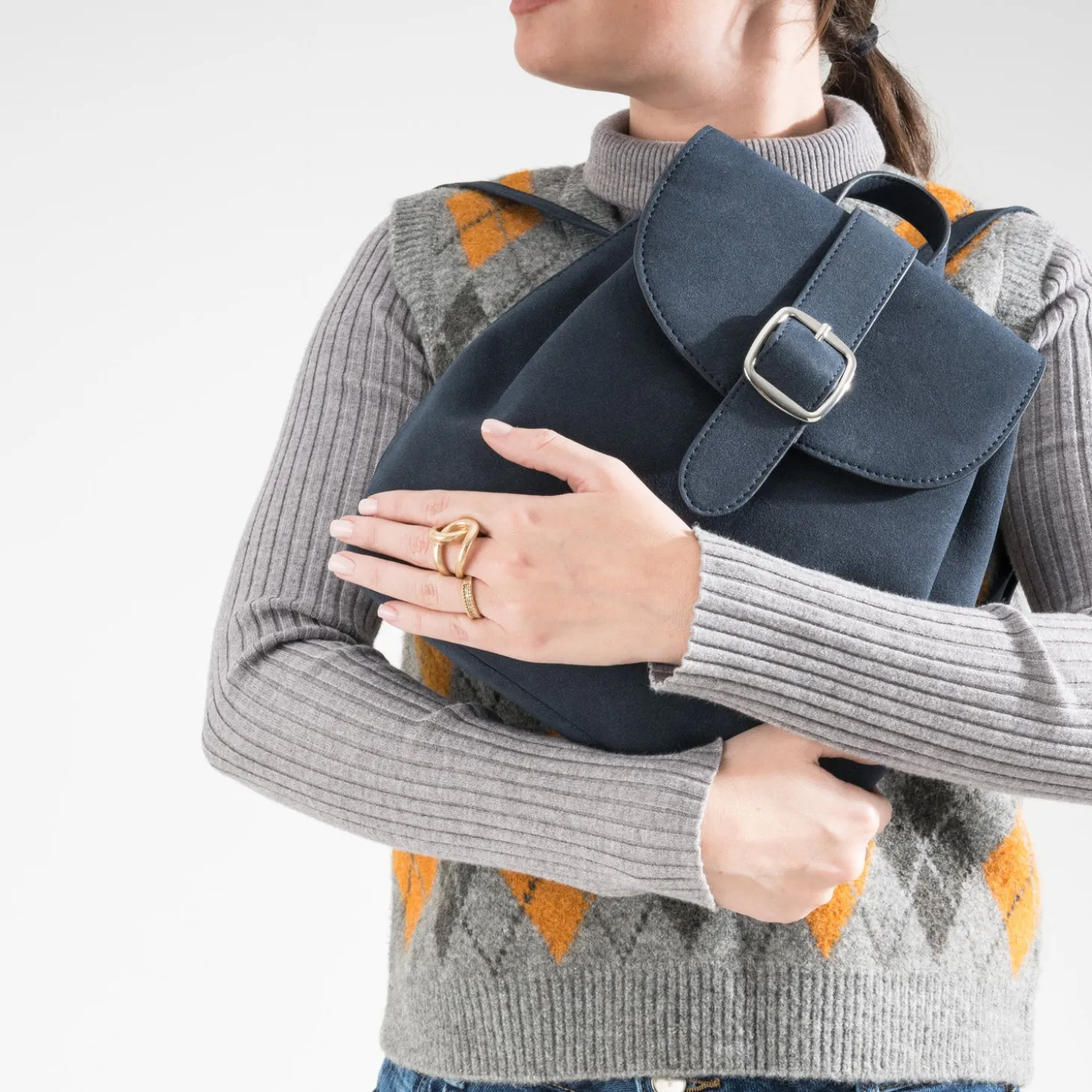 Le sac à dos cache de nombreux atouts. D’une part, son porté sur le dos, qui libère les mains et les mouvements. D’autre part, son volume ajustable par un jeu de pressions. A l’intérieur, le compartiment principal présente deux poches pour optimiser le rangement. Un accessoire bleu marine qui s’accorde facilement avec les looks composés de pièces en jean, au quotidien.