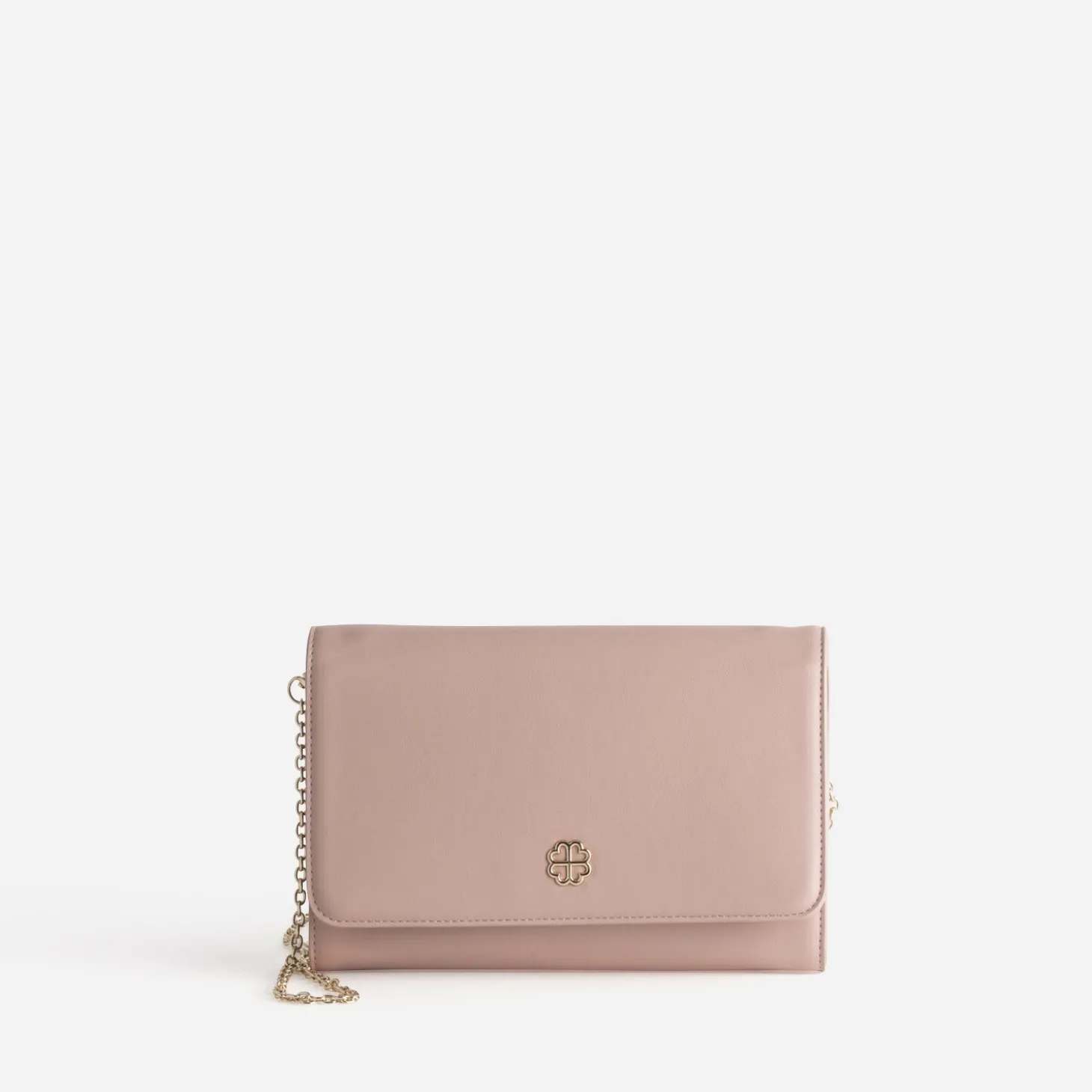 Rose poudré, le sac à main pour femme s’offre une teinte délicieusement estivale. Plat et de forme rectangulaire, il est confectionné dans une matière synthétique lisse et rigide. A l’intérieur, les deux compartiments s’ouvrent sur une poche centrale zippée. Pensé pour être porté à la main, façon pochette, il est livré avec une bandoulière-chaînette en métal jaune, amovible par mousquetons, en écho au détail bijou placé sur le rabat. Un modèle à orienter avec une silhouette vaporeuse et légère, dans une palette chromatique sorbet, autour du bleu ciel, vert amande, jaune pâle, pour exalter les sens et le style.