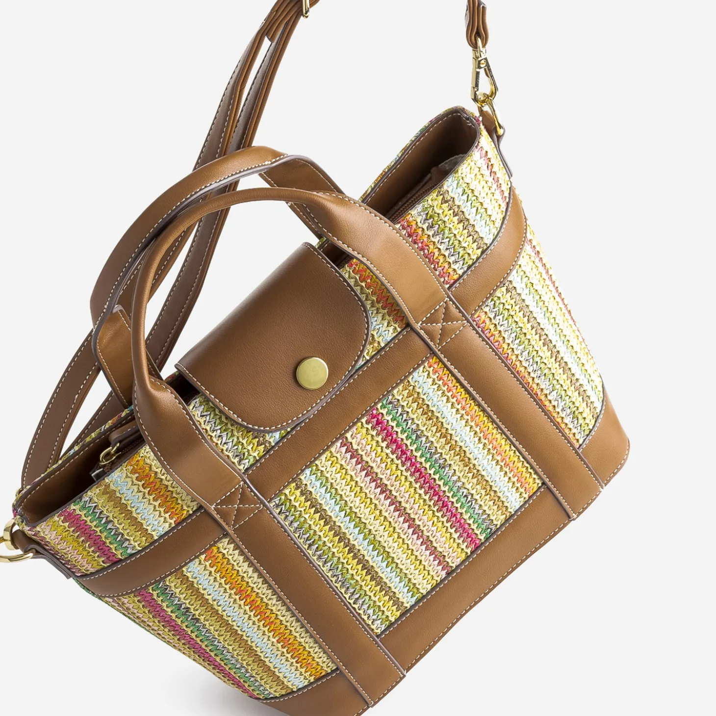 Sac à main camel et tressage multicolore