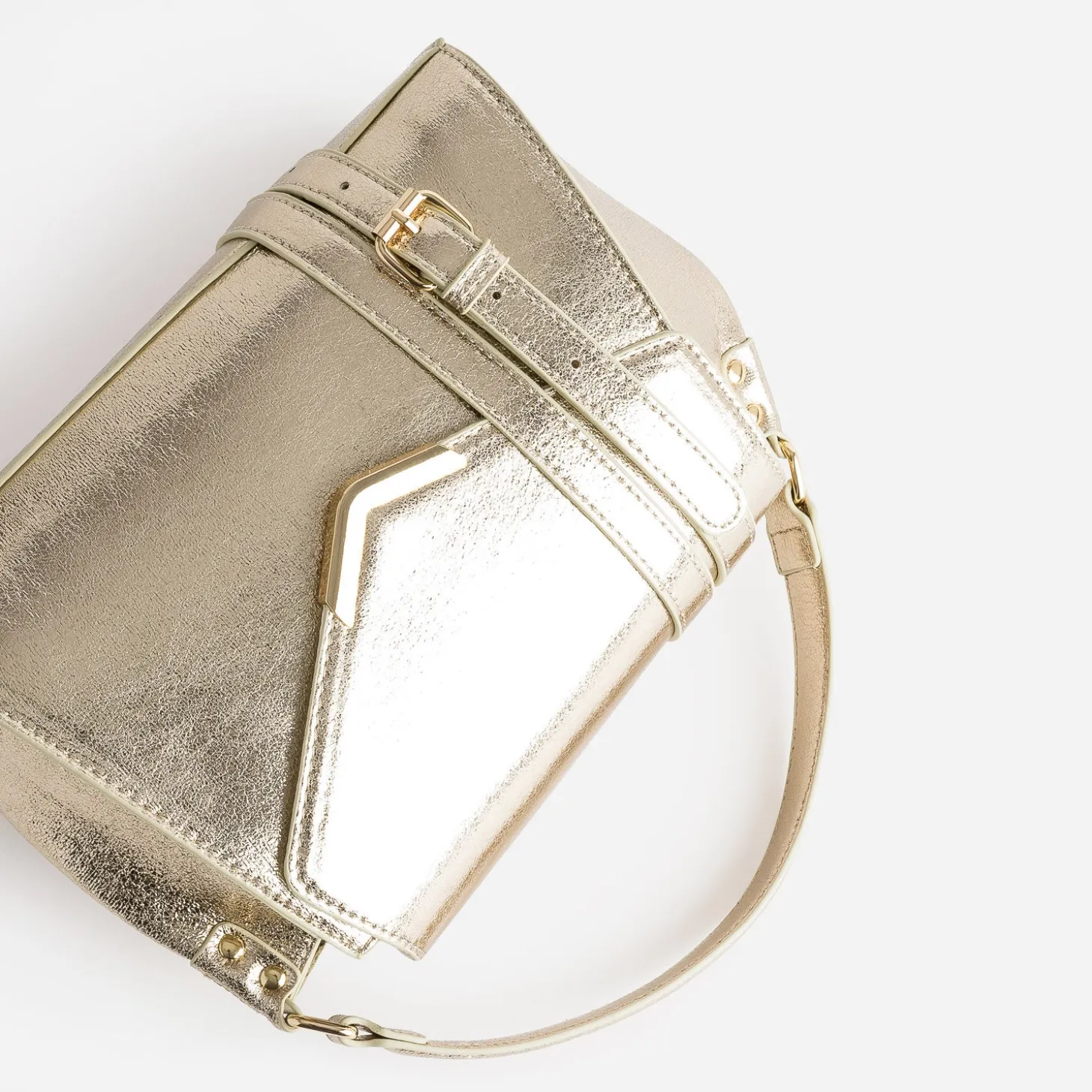 Porté à la main par la poignée, ou sur l’épaule ou croisé, grâce à la bandoulière réglable et amovible, ce sac à main pour femme assure une touche de chic à tous les looks. En matière synthétique, il propose un coloris doré métallisé, en écho aux métalleries, donc une baguette chevron en finition du rabat. Sa forme rigide ose la fantaisie, sur un compartiment assez large, pour accueillir tous vos essentiels. Un sac parfait, pour twister vos tenues du quotidien.