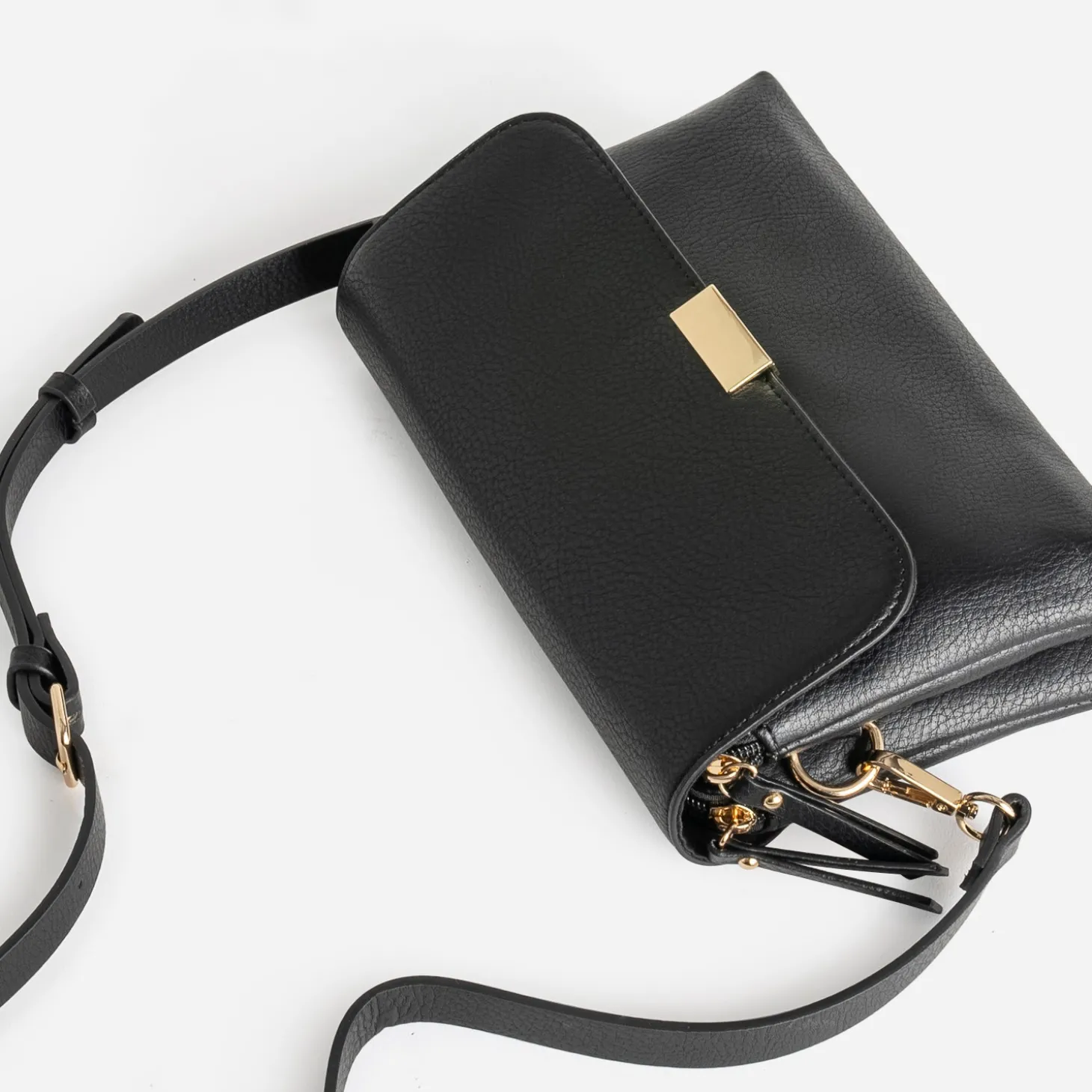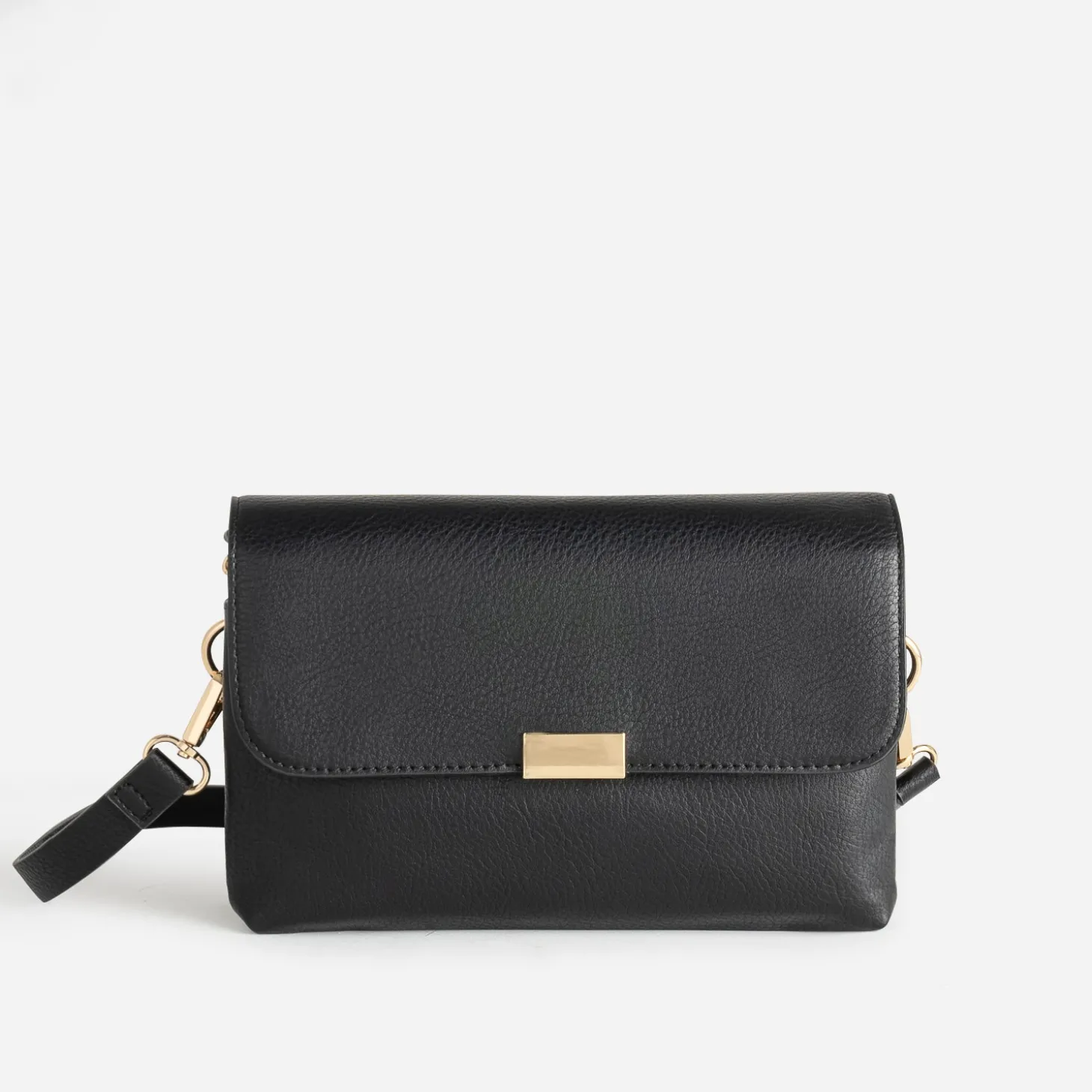 Sobriété et élégance vont souvent de pair. La preuve est faite avec ce sac à main de format moyen. En matière synthétique lisse, il se décline en coloris noir, sur un design épuré. Son atout ? Ce sont ses deux compartiments zippés, pensés pour mieux organiser son contenu et cachés sous un rabat aimant. La bandoulière est réglable pour ajuster le porté, et amovible, pour pouvoir être changée par une version ethnique ou imprimée.