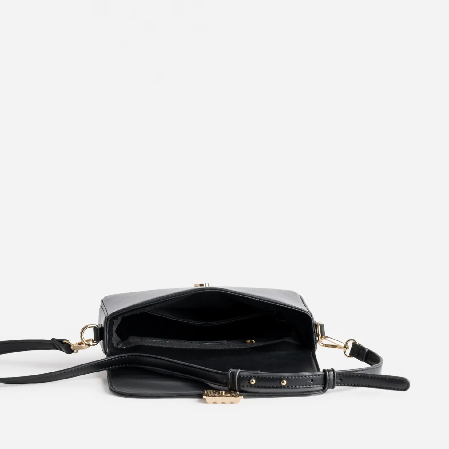 La recherche DU sac à main parfait s’arrête ici. En matière synthétique lisse, coloris noir, forme rectangulaire rigide, il tient la tête de liste des accessoires de maroquinerie indispensables au quotidien. Il est rehaussé de métalleries dorées, jusqu’au fermoir fantaisie. Le compartiment principal est doté de deux poches internes, dont une zippée, et d’une poche externe zippée à l’emplacement discret. Il se porte sur l’épaule ou croisé, grâce à la bandoulière réglable et amovible. Un modèle pensé pour durer, qu’importe la saison, les tendances, les envies.