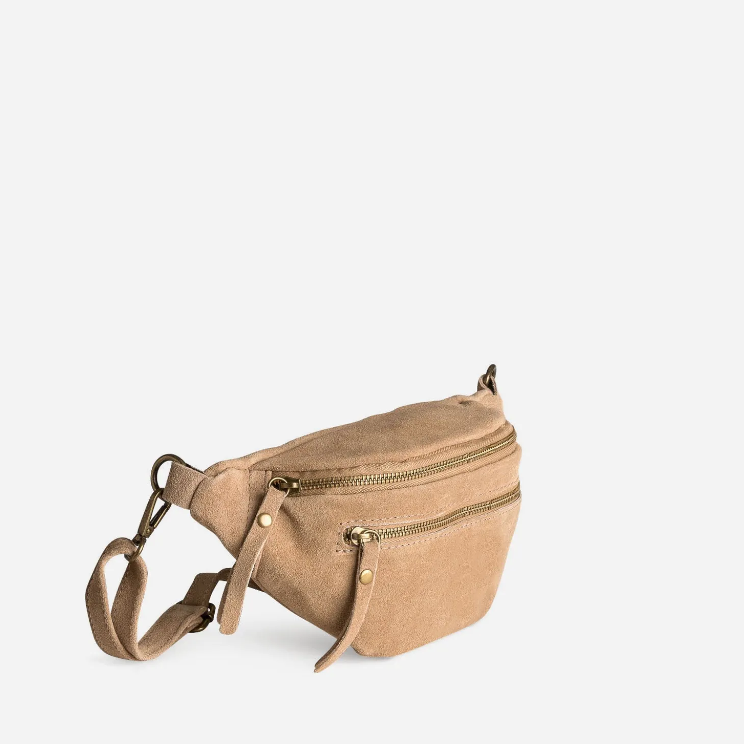 Le sac banane a fait ses preuves. Mode et fonctionnel, il est revisité en cuir velours, sublimé par un coloris beige. Le compartiment principal présente une poche interne zippée, et une poche externe zippée, pensée pour accueillir clés ou cartes plus facilement. La bandoulière est réglable, pour s’ajuster sur le buste, et amovible, pour être échangée pour un modèle plus ethnique par exemple. Un accessoire qui s’accorde avec toutes les tenues et tous les styles.