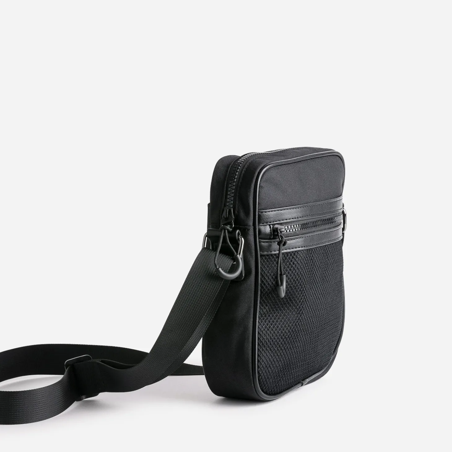 Jamais trop de poches ! Portefeuille, téléphone, clés, cartes, le sac bandoulière est votre allié pour vous alléger ! Choisissez-le en textile noir, avec bandoulière réglable, et multiples poches, 2 internes, dont 1 zippée et 2 externes, dont 1 zippée. L’empiècement de résille mesh rappelle les équipements de sport.