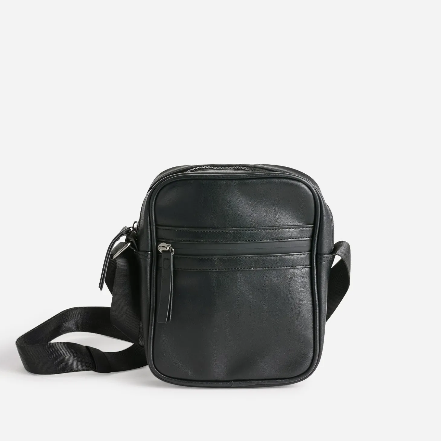 Le but de ce sac pour homme ? Libérer les mouvements, alléger le quotidien. Ses atouts ? De multiples poches, internes et externes, des zips et une large bandoulière tissée réglable, pour ajuster le porté. En matière synthétique lisse noire, il assure côté fonctionnalité comme côté style.