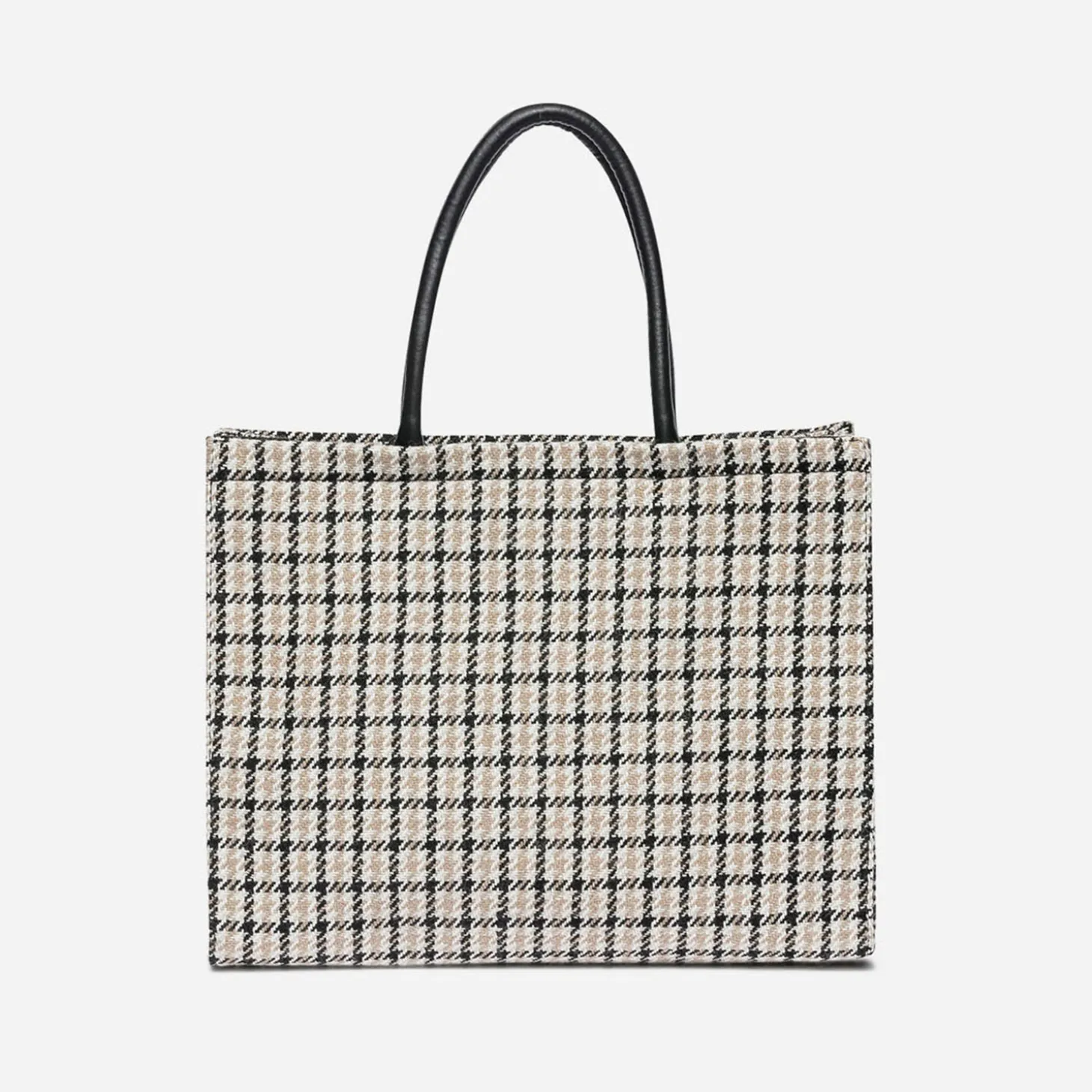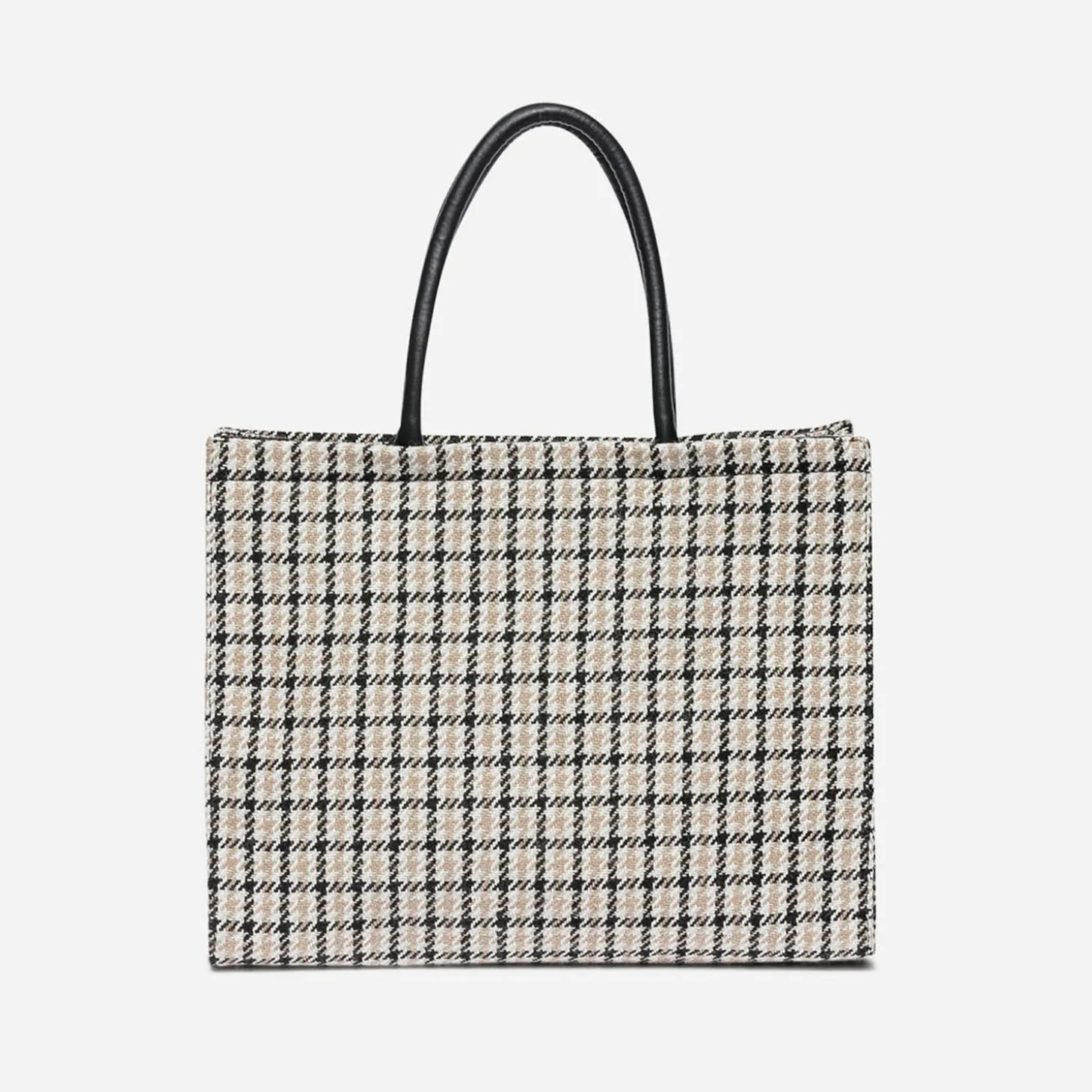 Sac cabas TEXTO beige, écru et noir à carreaux