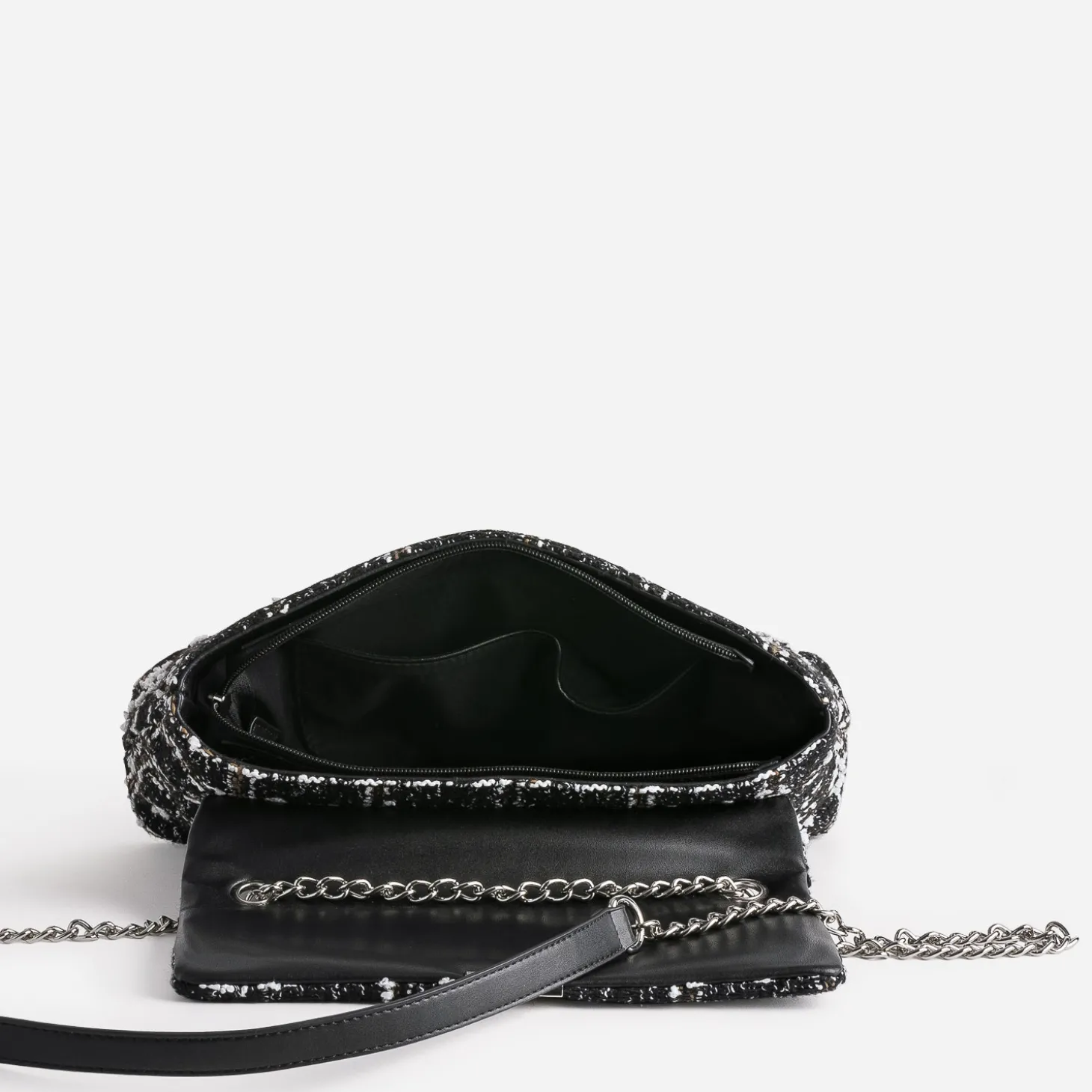 L’esprit Couture sublime l’allure. La preuve, encore une fois, avec ce sac à main femme en textile façon tweed. Noir, écru et camel, il est rythmé d’un effet carreaux et de sequins brodés, sur une forme rectangulaire. Découvrez la bandoulière ajustable courte ou longue, grâce à un système de coulisse judicieux.