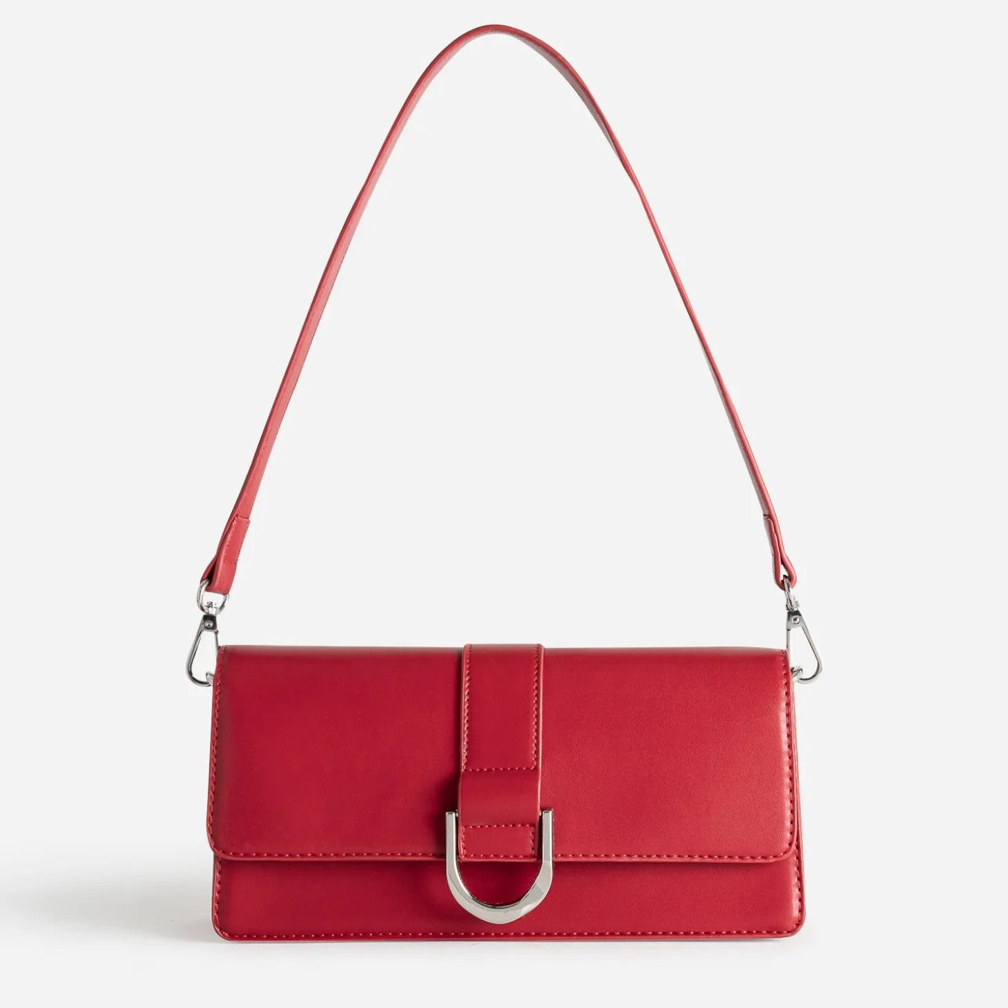 Ce sac à main pour femme marque par son élégance. Rigide, sur un format rectangulaire, il est confectionné en matière synthétique, et se décline dans un très beau rouge. Le rabat est décoré d’une large bride, finalisée par une boucle fantaisie en métal doré. Son atout, ce sont ses deux bandoulières, l’une courte, l’autre plus longue et réglable, pour ajuster les portés, sur l’épaule ou croisé. Imaginez-le avec une chemise à plastron volanté et une mini-jupe en jean gris, avec des socquettes blanches et une paire de mocassins en cuir noir.