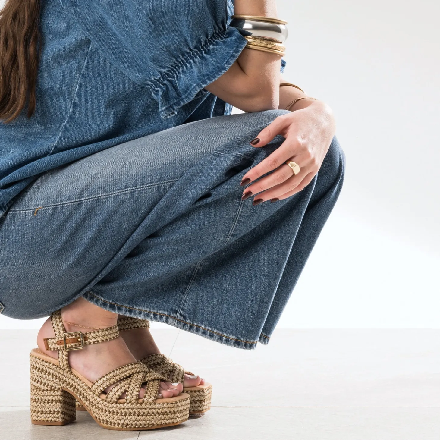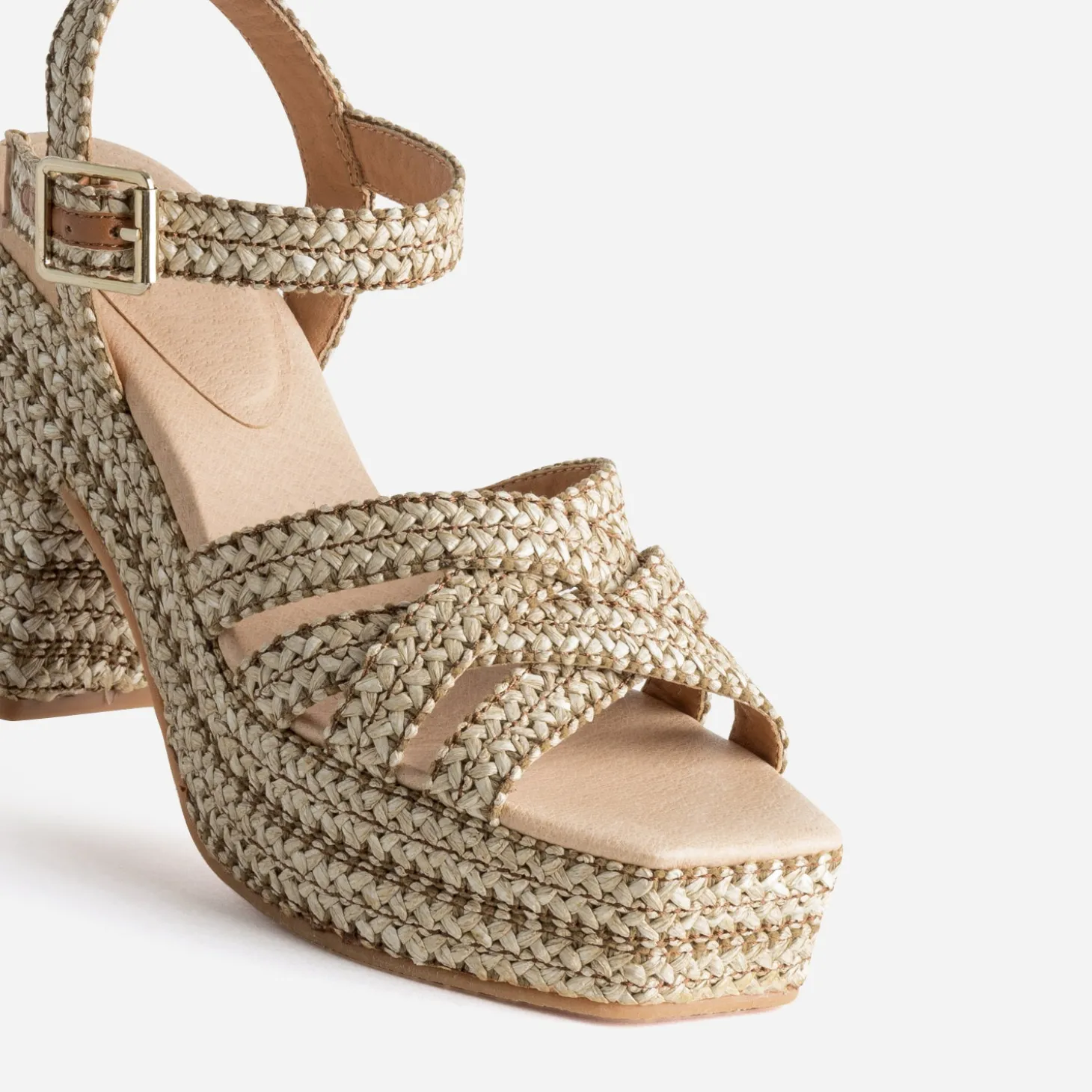 Un bout carré, un talon large de 10 cm et un patin avec de 3 cm, qui soulage la cambrure, un coloris beige et des brides effet raphia subtilement croisées, qui font écho à la semelle, cette sandale pour femme compile ses plus beaux atouts pour se faire remarquer. Un modèle à associer avec des tons neutres, comme le beige ou le kaki, dans un style bohème chic.