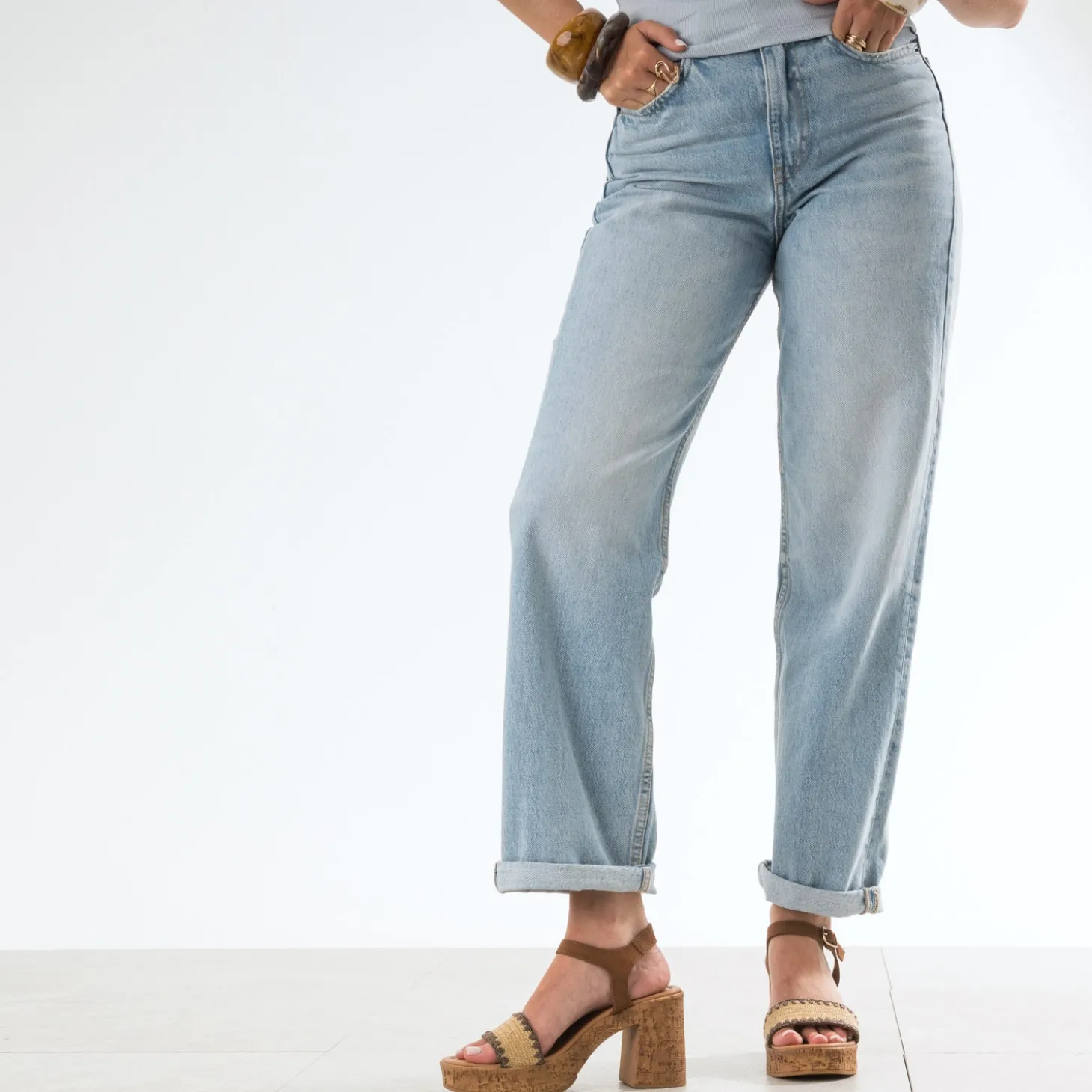 Allure ethnique chic assurée pour cette sandale pour femme. Montée sur un talon large effet liège soulagé par un patin avant, elle maintient le pied par une large bride beige tressée et une bride plus fine en cuir velours marron clair autour de la cheville. Un modèle à harmoniser avec un pull à manches courtes rose, un pantalon large cropped beige, et une ceinture camel.