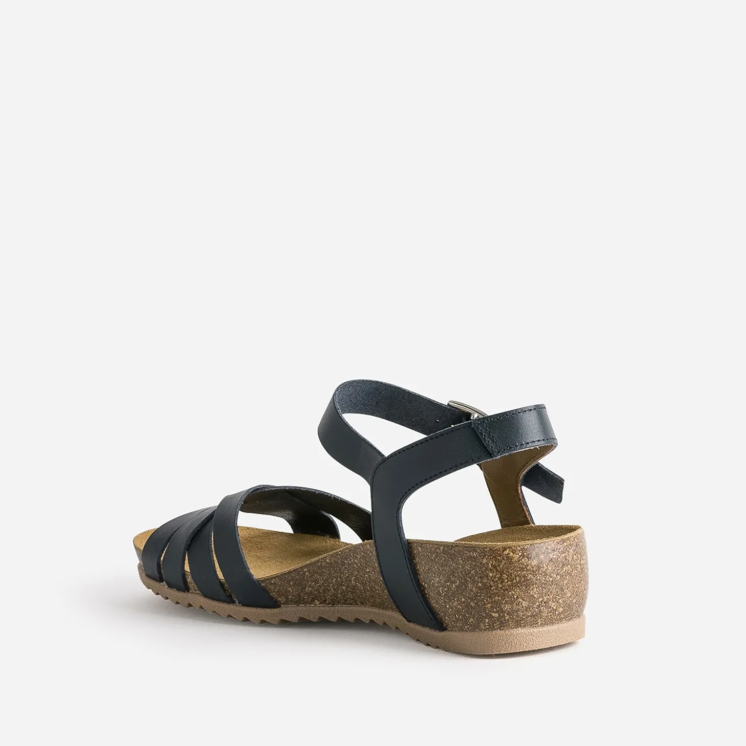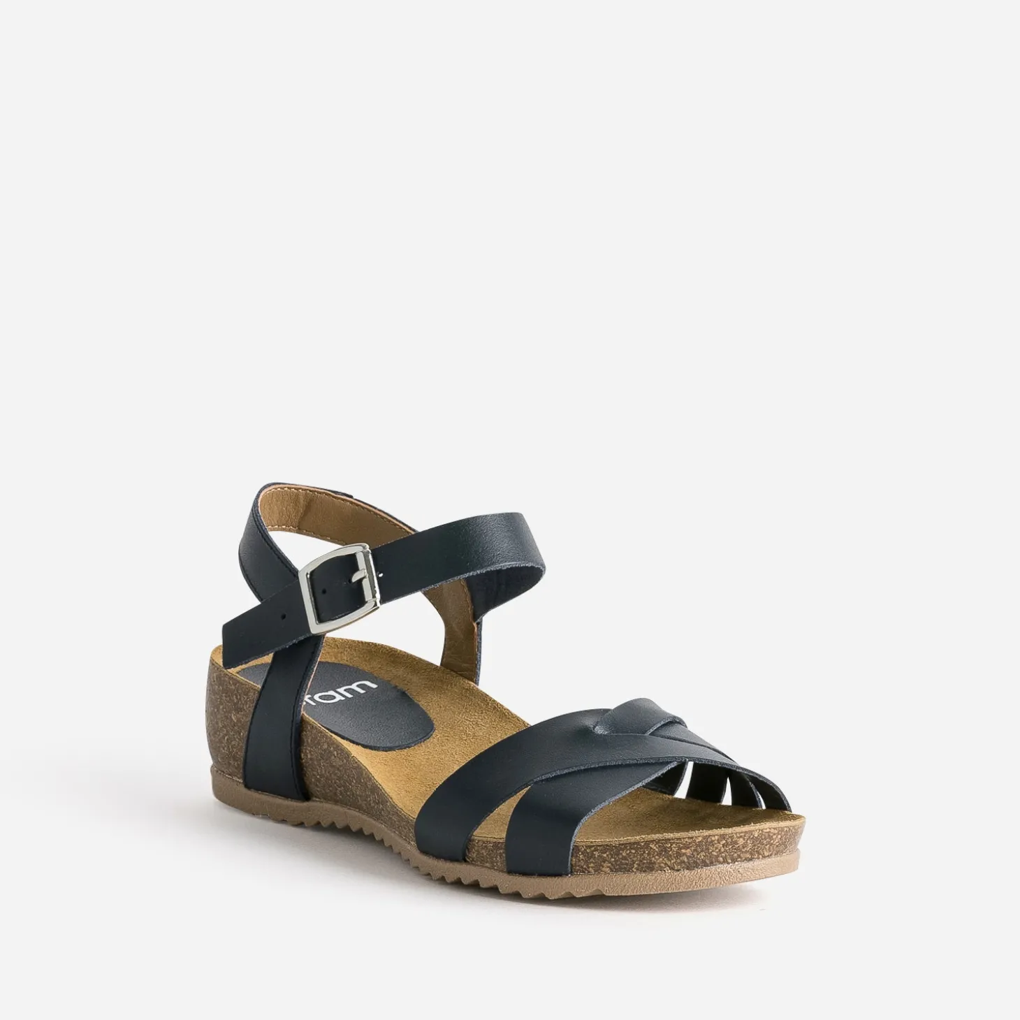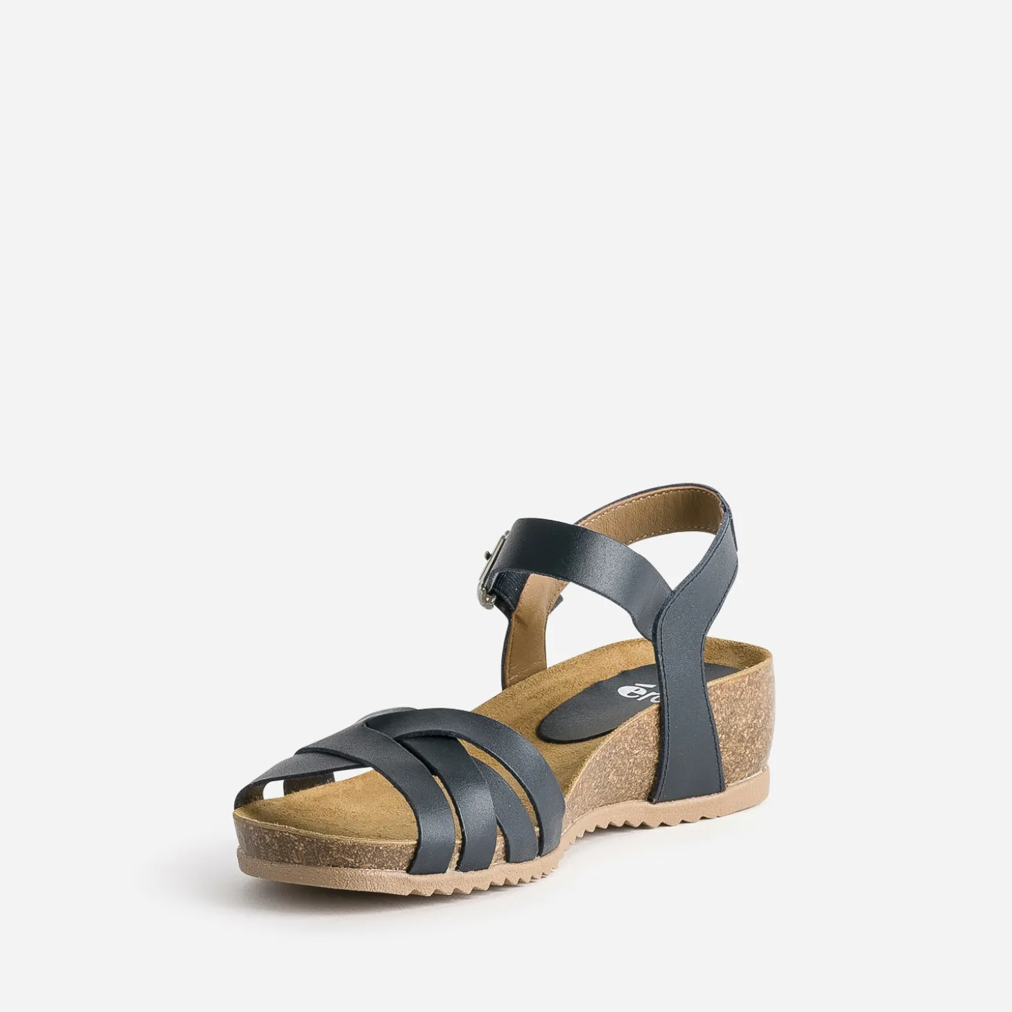 Un talon légèrement compensé, une première toute douce en cuir velours, des brides en cuir. Cette sandale pour femme ne veut qu’une chose, votre confort. Elle se décline en coloris marine, pour s’accorder à un maximum de tenues, à choisir de préférence, décontractées.