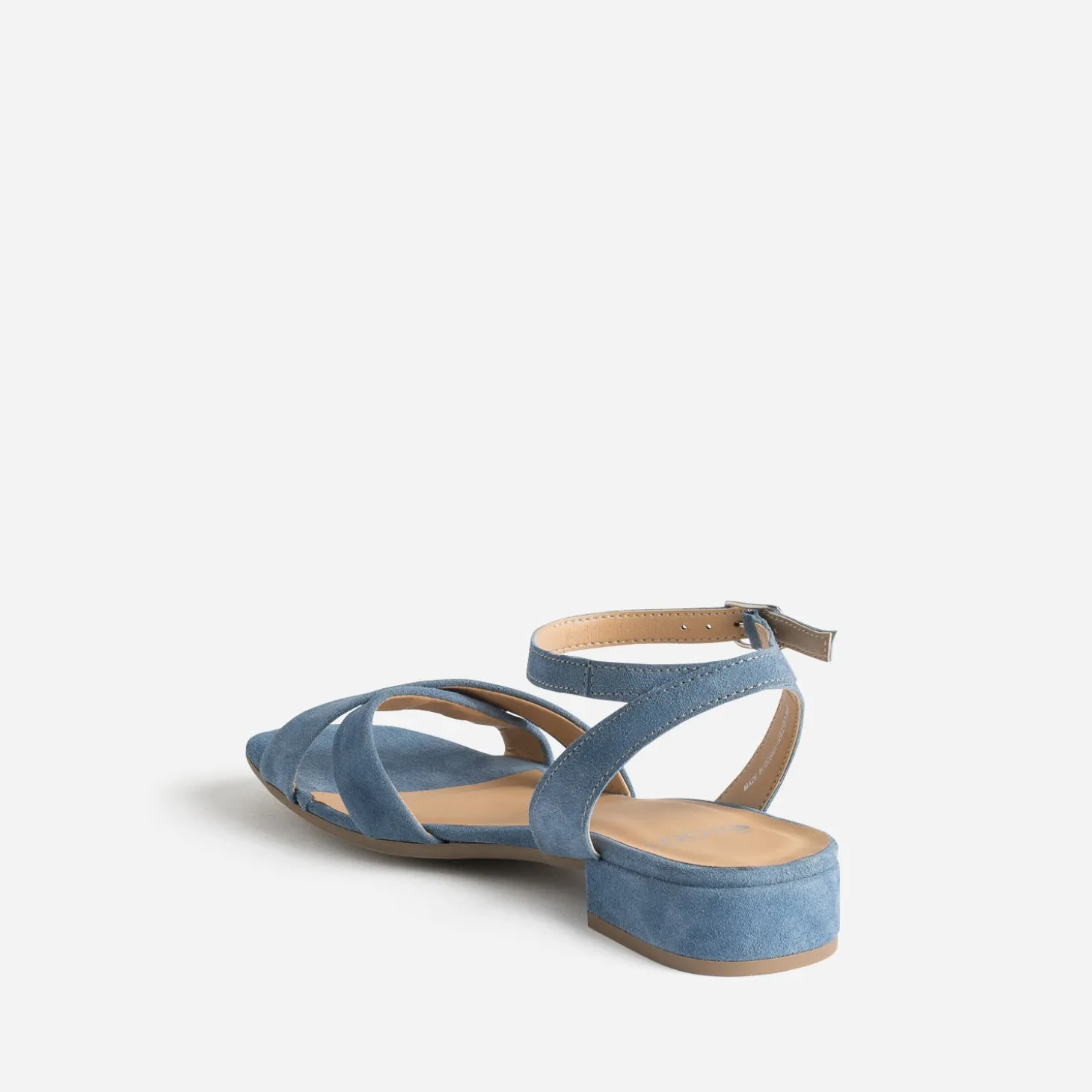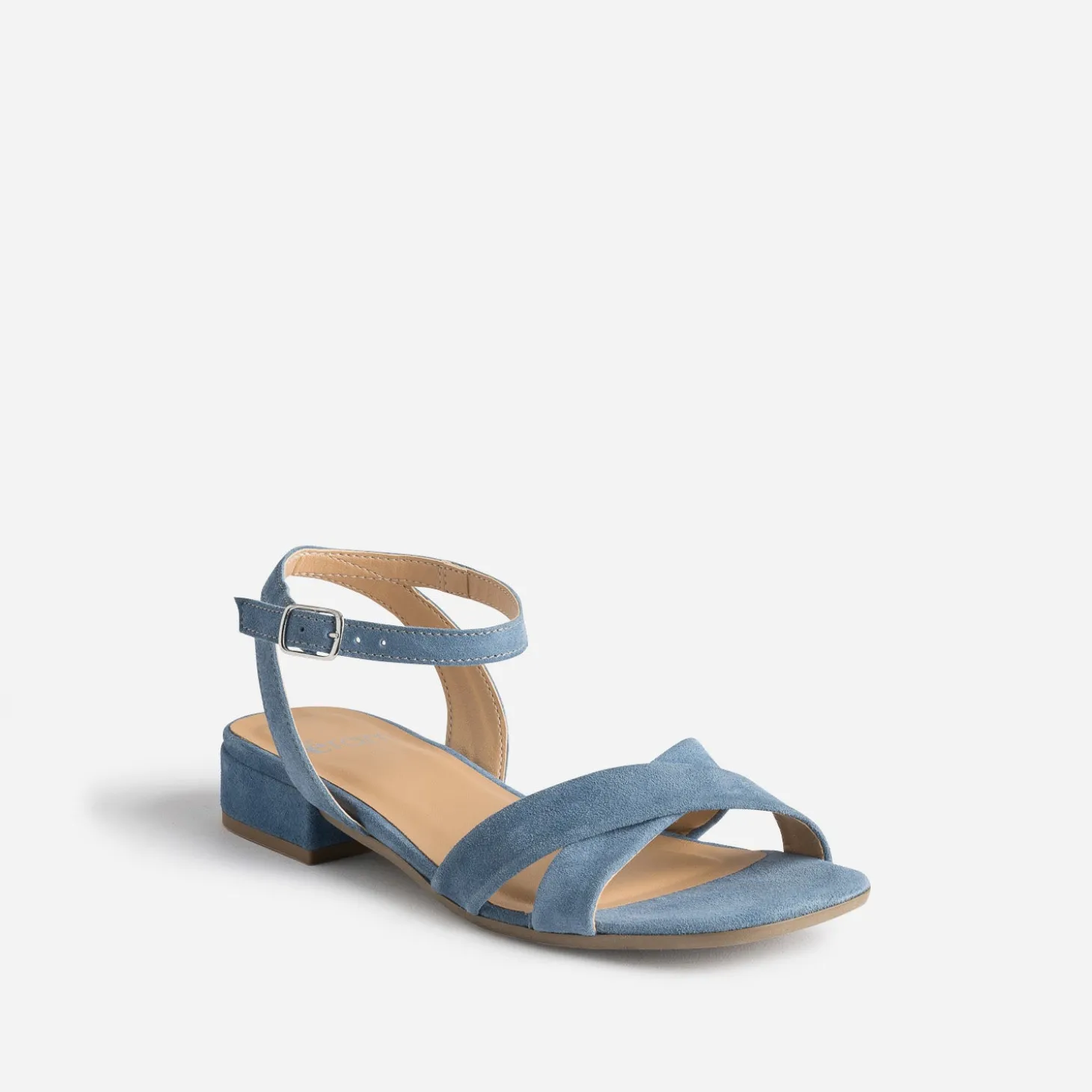 Avec ses brides croisées sur le dessus du pied, son cuir velours, son coloris bleu et son petit talon décroché, cette sandale pour femme est un modèle essentiel du shoesing estival. A privilégier avec robes et jupes vaporeuses.