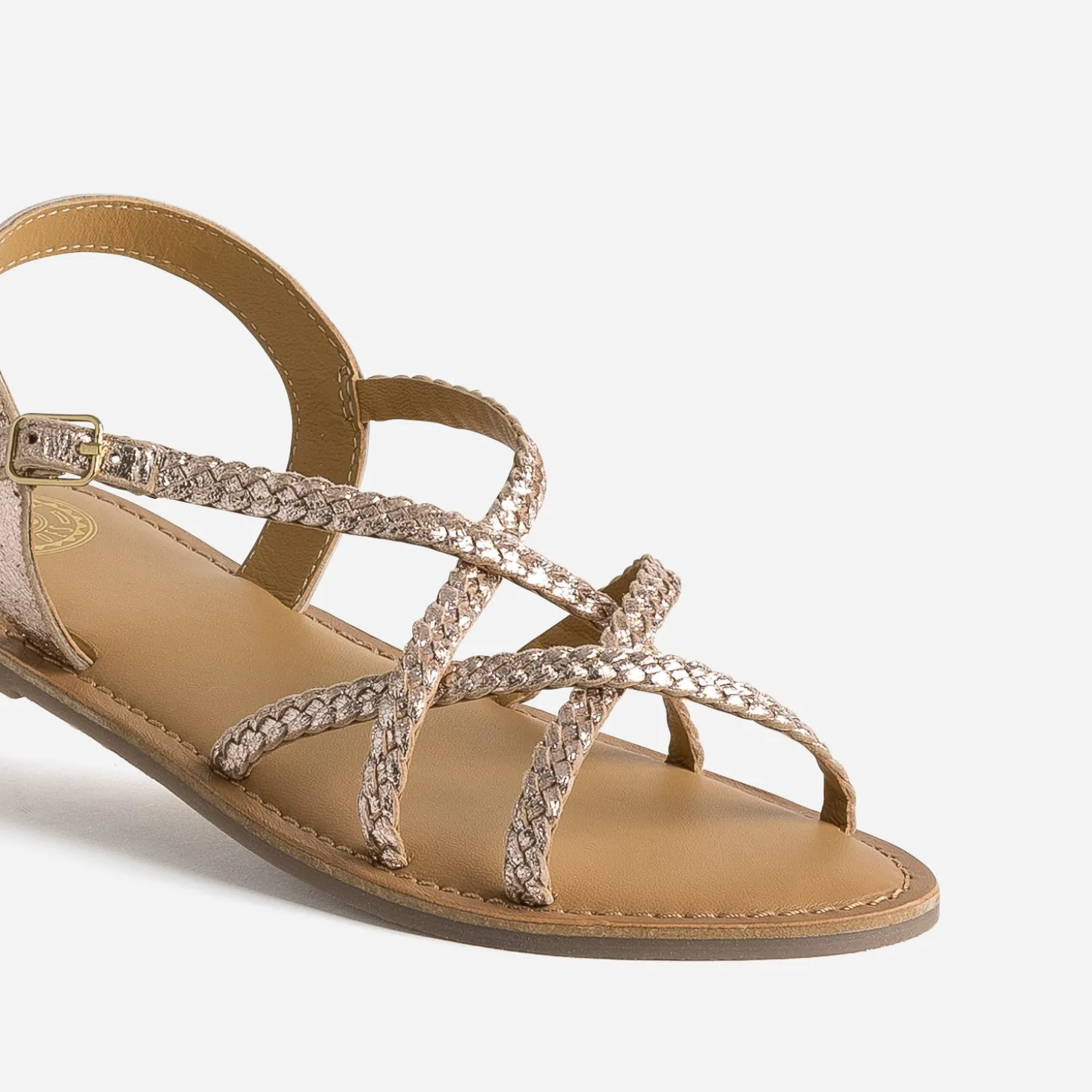 Coloris rose cuivré, finition métallisée, jeu de tresse maîtrisé : cette sandale plate pour junior fille est une valeur sûre, qui s’accorde à un maximum de looks de la saison. Avec une robe blanche pour une cérémonie, avec une combi-short en jean, avec une blouse et un pantalon chino rose fuchsia.