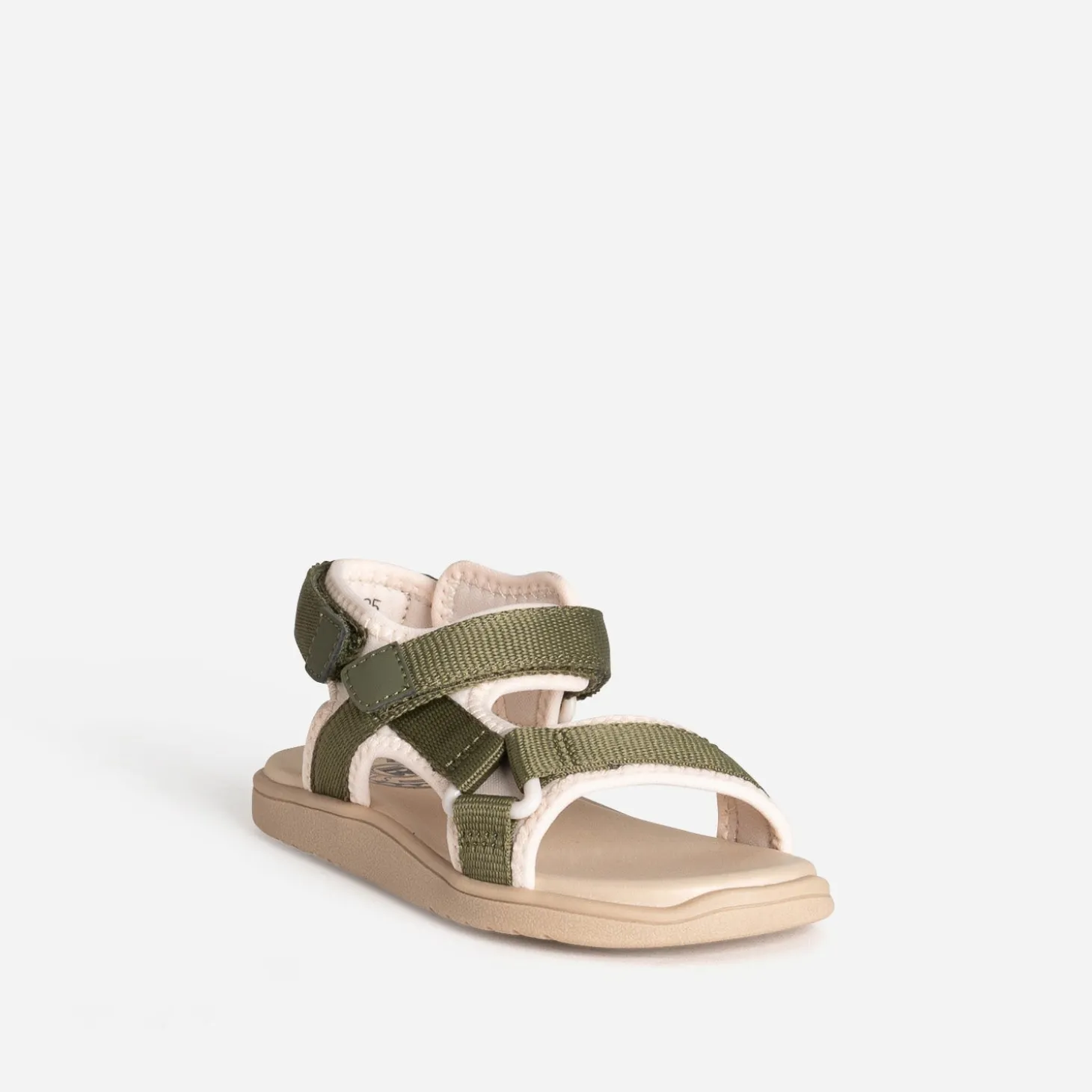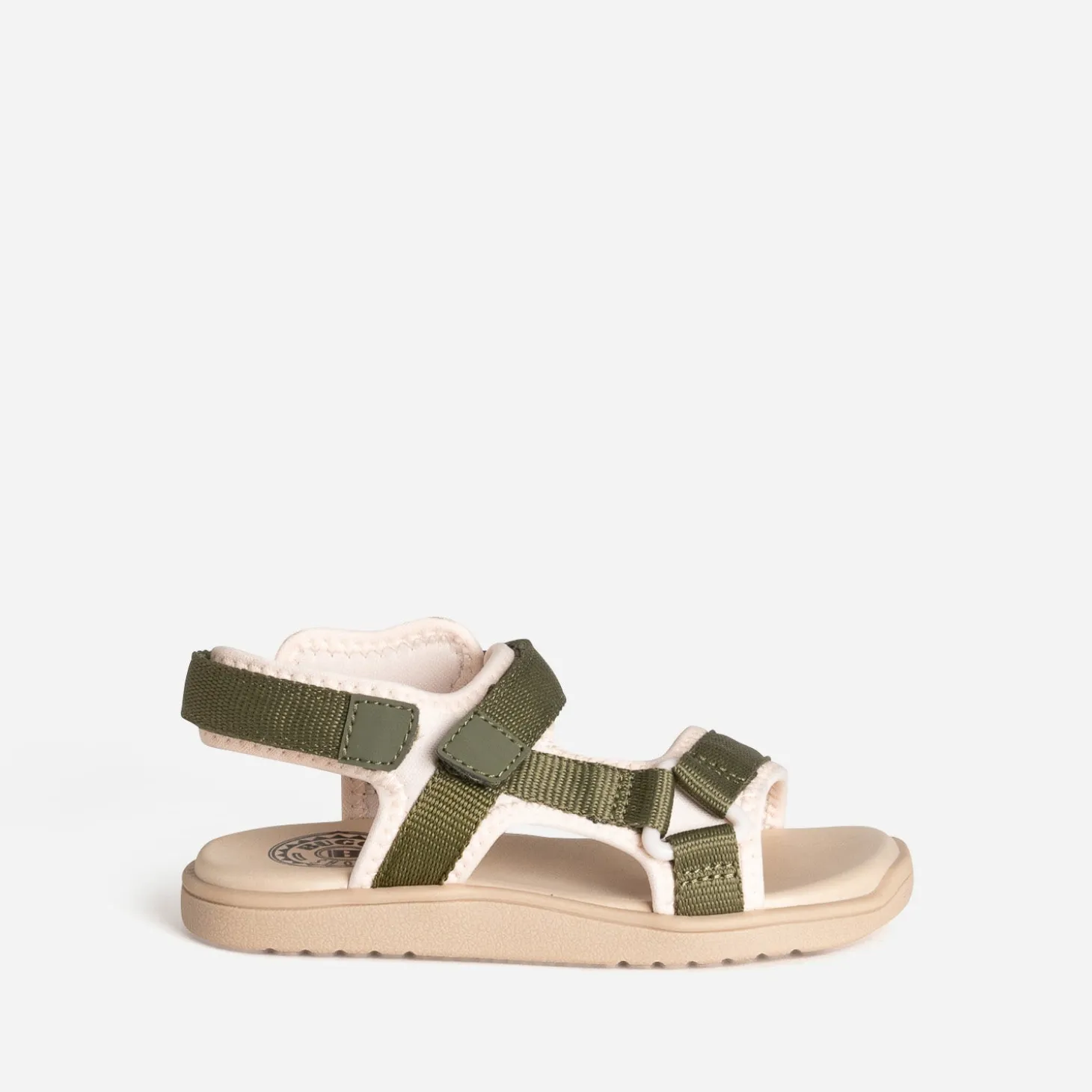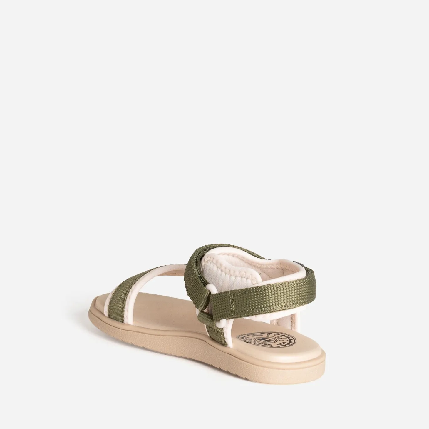 La sandale pour enfant se réinvente pour offrir un maximum de confort aux petits pieds. Par une matière textile souple, par des brides ajustables par scratchs, par une semelle moussée. Les galons se déclinent en coloris kaki sur fond beige. Un modèle inspiré du sport, pour poursuivre leurs aventures bien chaussés, tout au long de l’été.