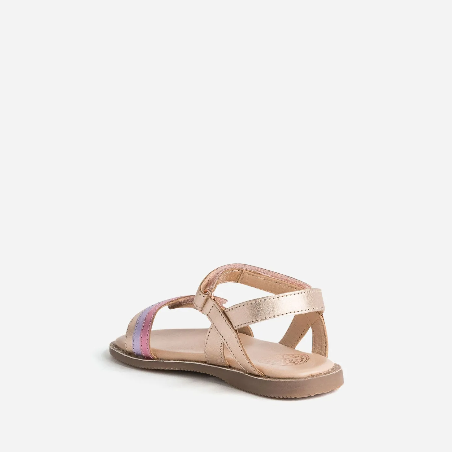 Les petites filles ont souvent des envies mode très ciblées : de la brillance et du rose. Cette sandale exauce tous leurs vœux : du cuir rose cuivré métallisé, une bride tricolore avec du rose vif et du parme, des paillettes sur la trépointe. Idéale pour une cérémonie, elle fonctionne aussi avec toutes ses robes d’été. Son scratch à l’avant permet d’adapter la sandale à la morphologie du pied.