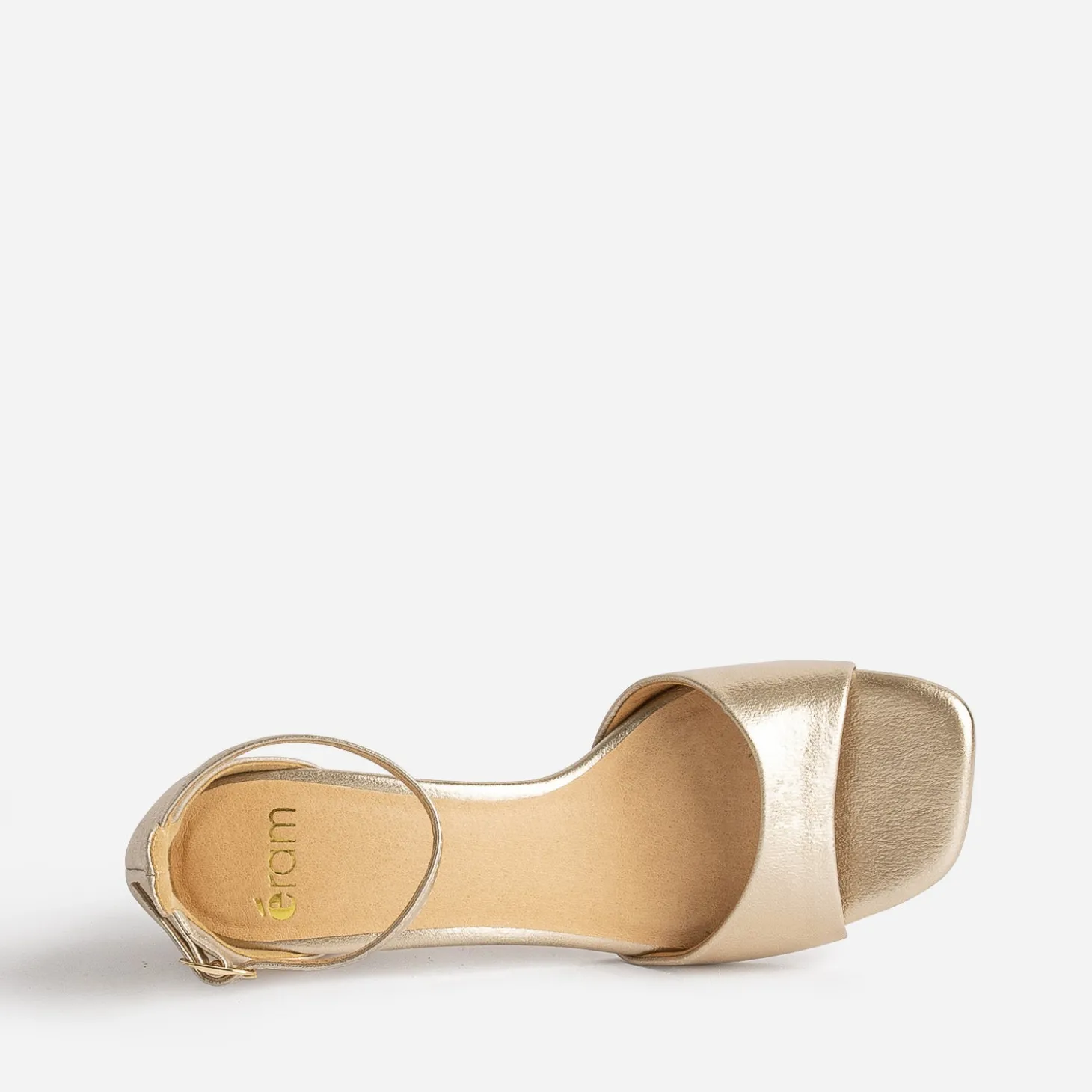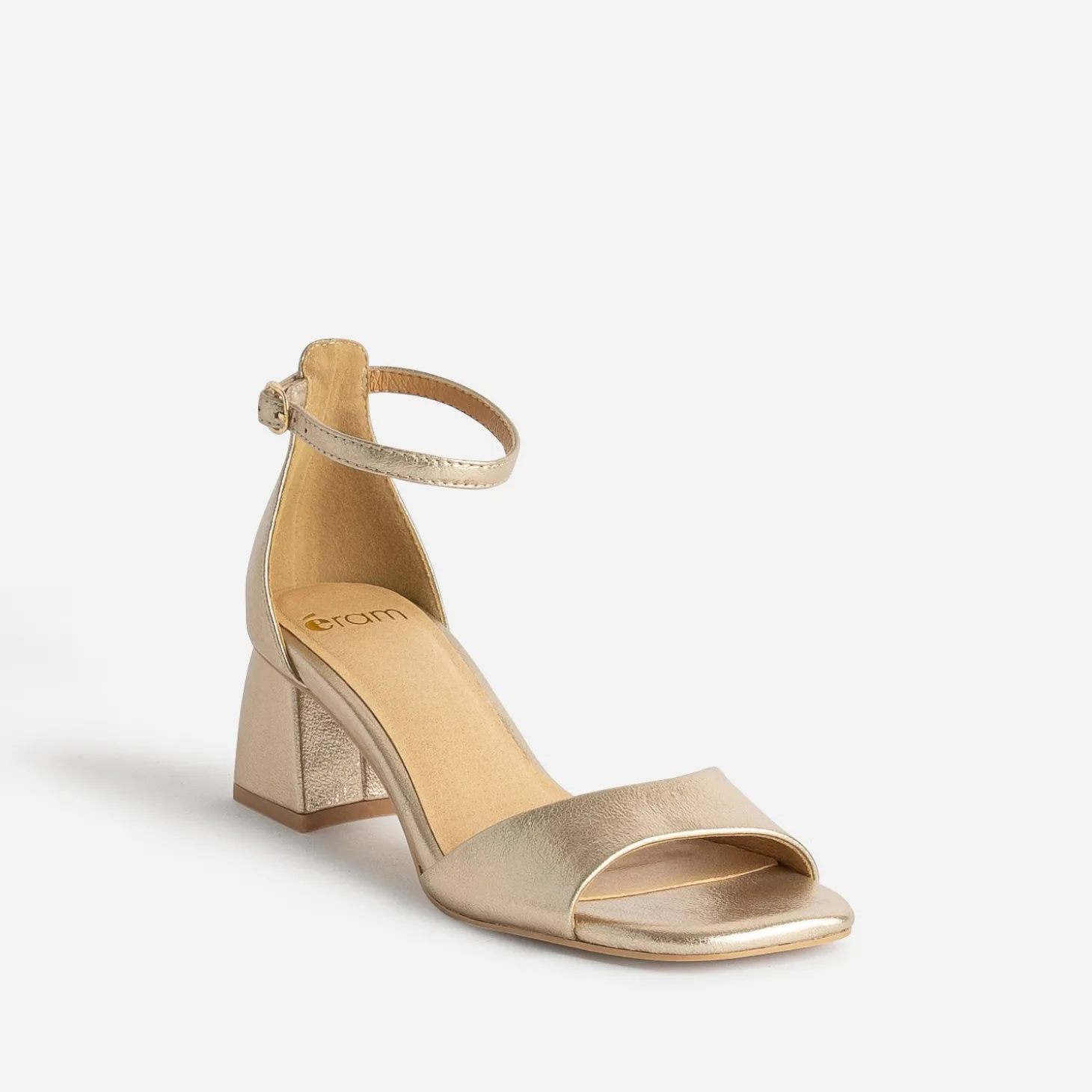 Une sandale dorée, et c’est toute la tenue qui gagne en chic ! Ce modèle femme mise aussi sur le confort : semelle première moussée, talon flare de 5,5 cm et tige montante pour maintenir l’arrière du pied. Le bout carré lui fait gagner en modernité. Avec une robe longue bleu roi ou vert foncé, et vous êtes ready pour la prochaine garden party.n