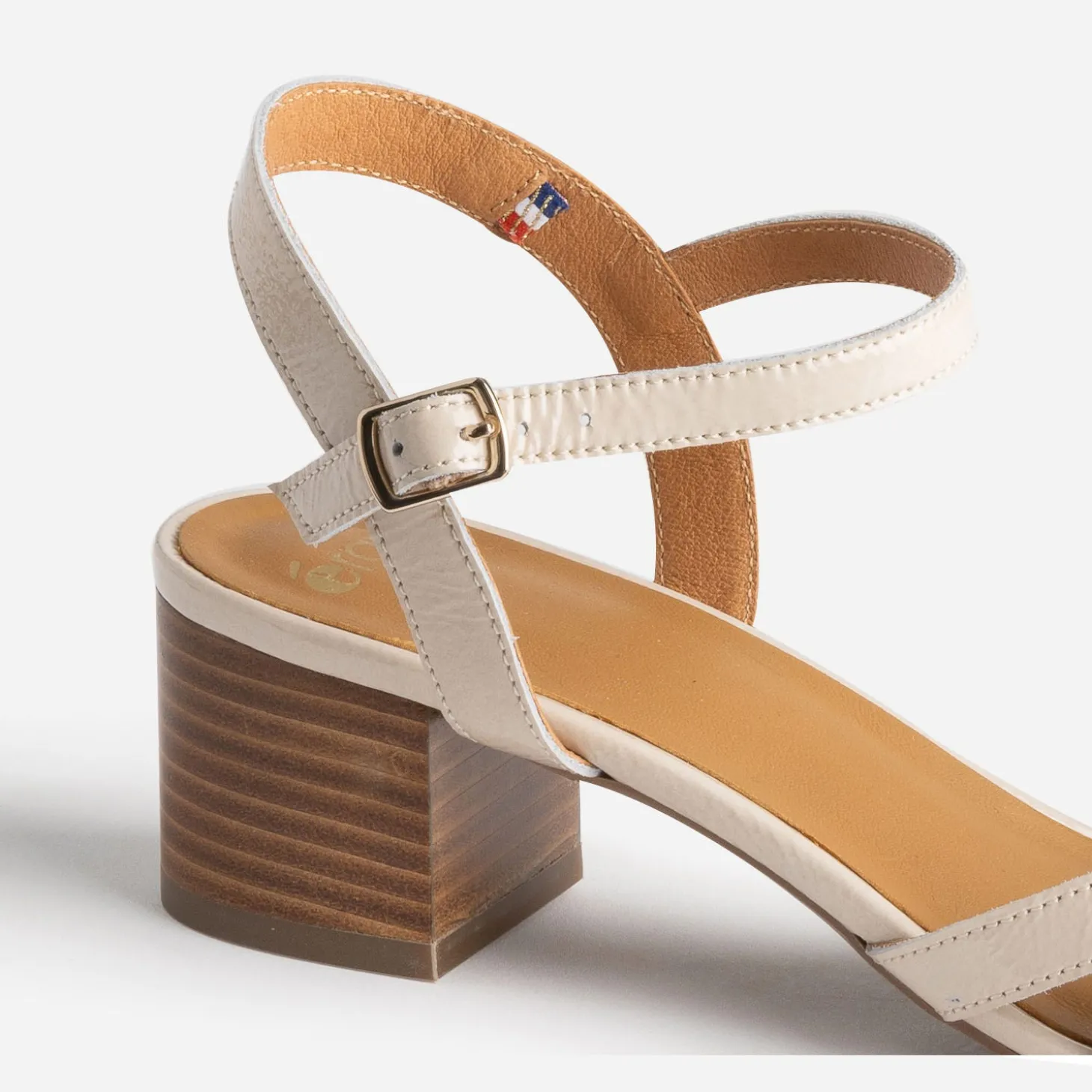 Avec son jeu de brides fixes croisées, cette sandale femme s’inscrit dans la tendance rétro. En cuir verni beige clair, elle est montée sur un talon carré de 4,5 cm. Souplesse, confort, style, tout est pensé pour s’accorder à vos looks quotidiens dans une belle harmonie. Privilégiez-la une robe élégante de couleur beige ou taupe.
