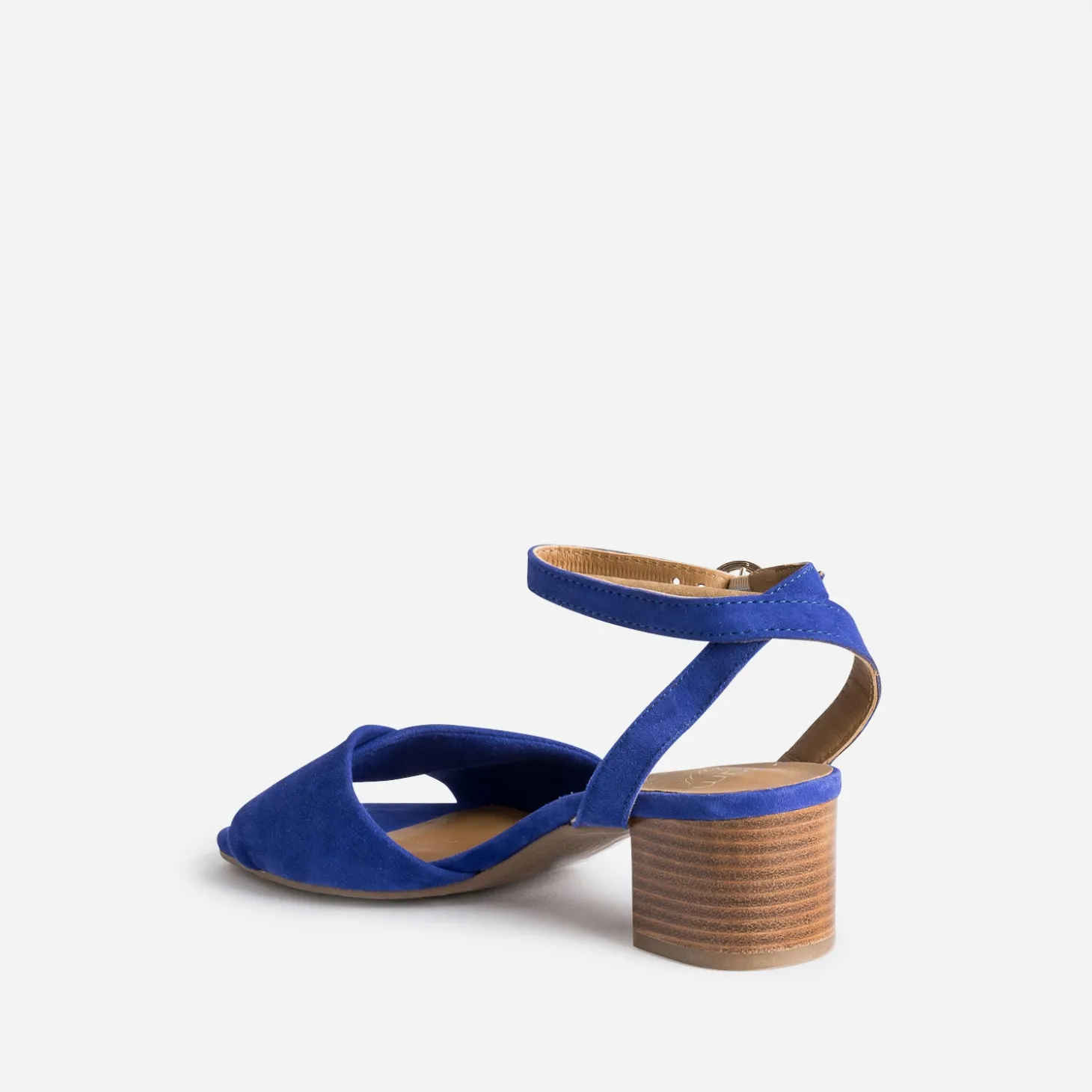 L’été donne envie de mettre plus en valeur les pieds. Par un cuir velours souple sur brides croisées, par un coloris bleu électrique lumineux, par un petit talon imitation bois de 4,5 cm. Cette sandale femme est la meilleure option, pour profiter des belles journées estivales. De plus, la semelle intérieure est moussée, reconnue pour ses propriétés d’amorti, de confort. Associez-la avec un look dans les tons de camel ou de gris argenté.