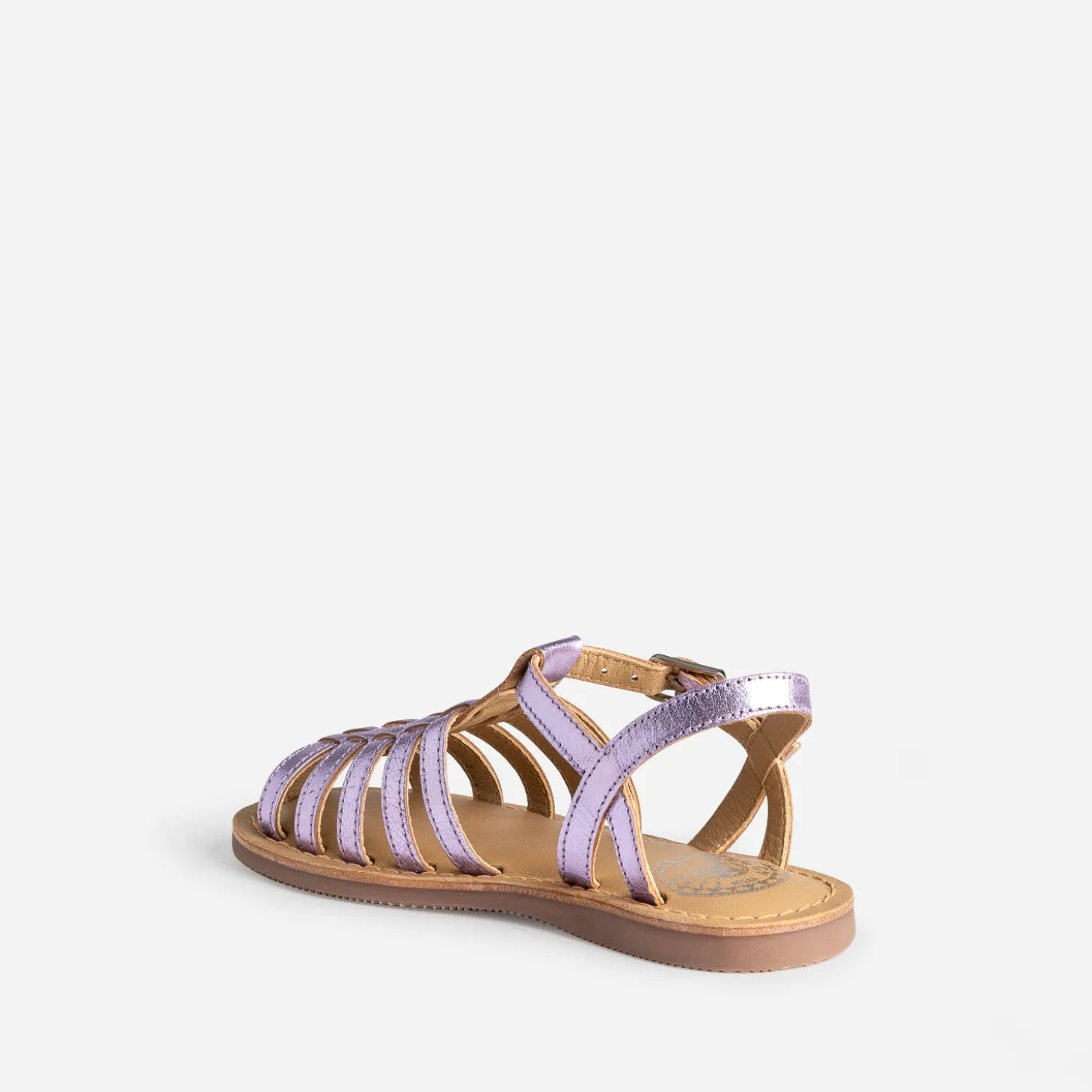 Le parme fait partie du top 3 de ses couleurs préférées ? Bonne nouvelle ! C’est aussi celle choisie pour cette sandale pour fille. Les brides en cuir lisse avec finition métallisée se multiplient jusqu’à protéger le bout du pied. Elle va forcément l’adorer : les paris sont lancés !