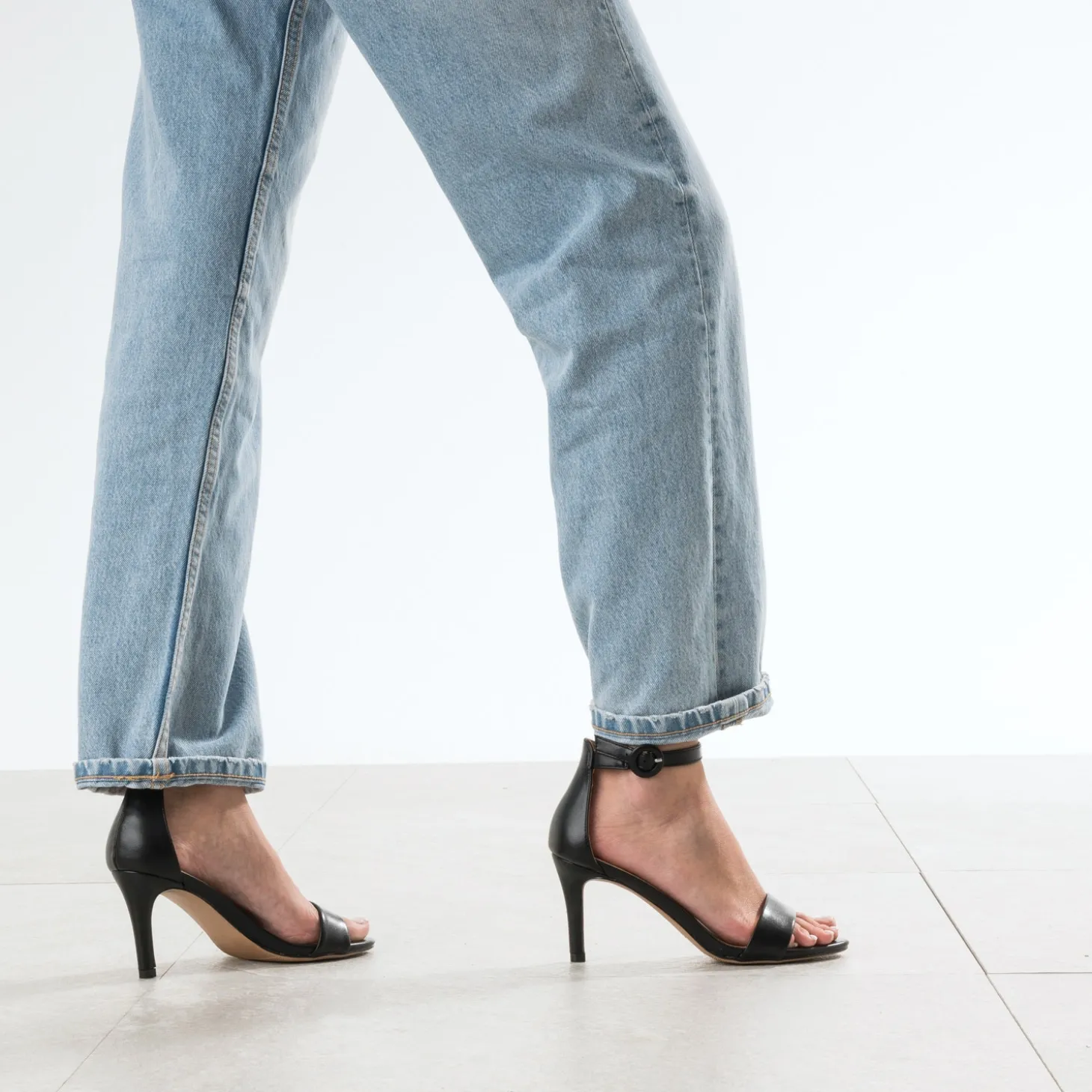 Il n’existe rien de plus féminin que la sandale à talon fin. En matière synthétique, elle habille le pied d’une bride sur le dessus du pied et d’une tige montante sur l’arrière. Montée sur un talon fin de 8 cm, elle se décline en coloris noir pour finaliser toutes les tenues d’été, en journée comme en soirée, avec une élégance évidente.