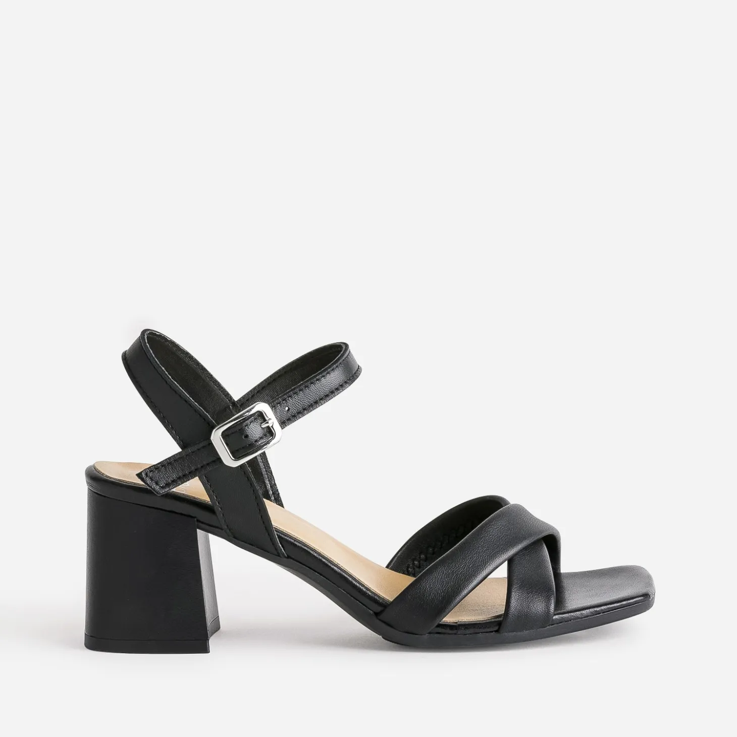 Minimaliste. C’est le mot choisi pour définir cette sandale pour femme. En cuir mat, elle se décline en coloris noir. Elle est montée sur un talon carré, en écho au bout du pied. Un modèle intemporel, qui s’impose comme un essentiel de la saison. En costume noire et bijoux dorés si vous êtes invitée, vous aurez aussi plaisir à la porter au quotidien, avec un look adapté.
