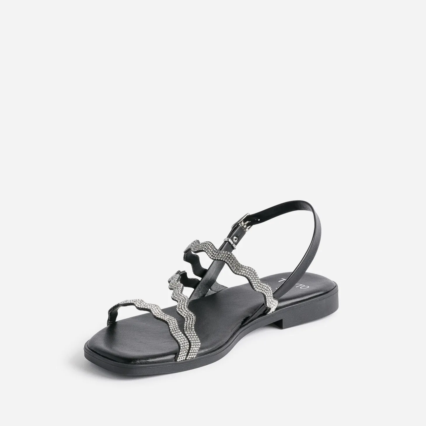 Il suffit parfois d’un détail. Ici, ce sont les strass blanc qui mènent la danse sur cette sandale pour femme. En matière synthétique noire, elle est modernisée par un bout carré et des brides façon vagues. Un modèle idéale pour apporter une touche de chic, à votre tenue : top blanc et jupe longue plissée noire, par exemple.