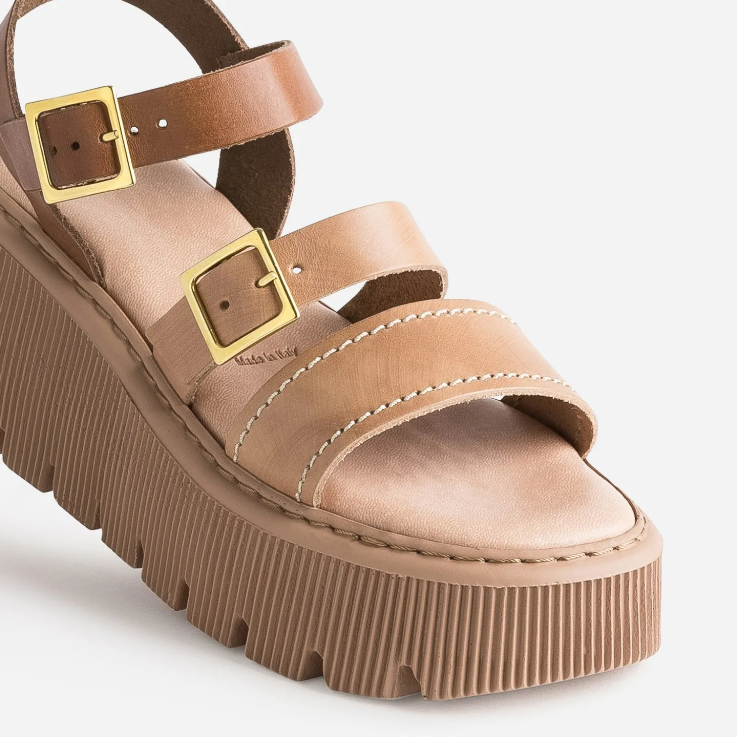 Gagner des centimètres, sans effort ? C’est possible avec cette sandale femme. Montée sur une semelle à plateforme de 3 cm à l’avant et 5,5 cm à l’arrière, elle allonge la silhouette en un clin d’œil. Son atout confort, c’est aussi sa semelle intérieure moussée et ses trois larges brides en cuir dans des nuances de camel. Osez-la en monochrome, avec une tenue toute en fluidité, dans les tons beige, vert foncé ou lilas.