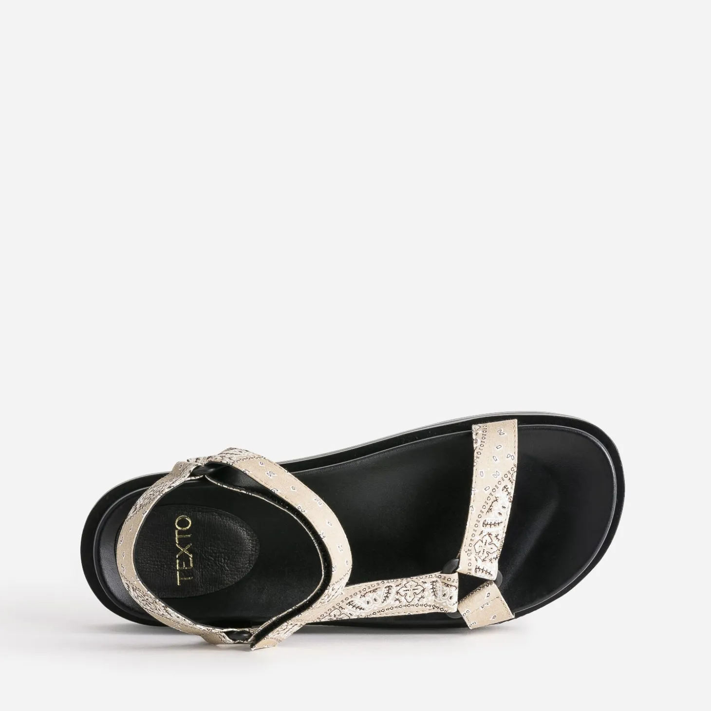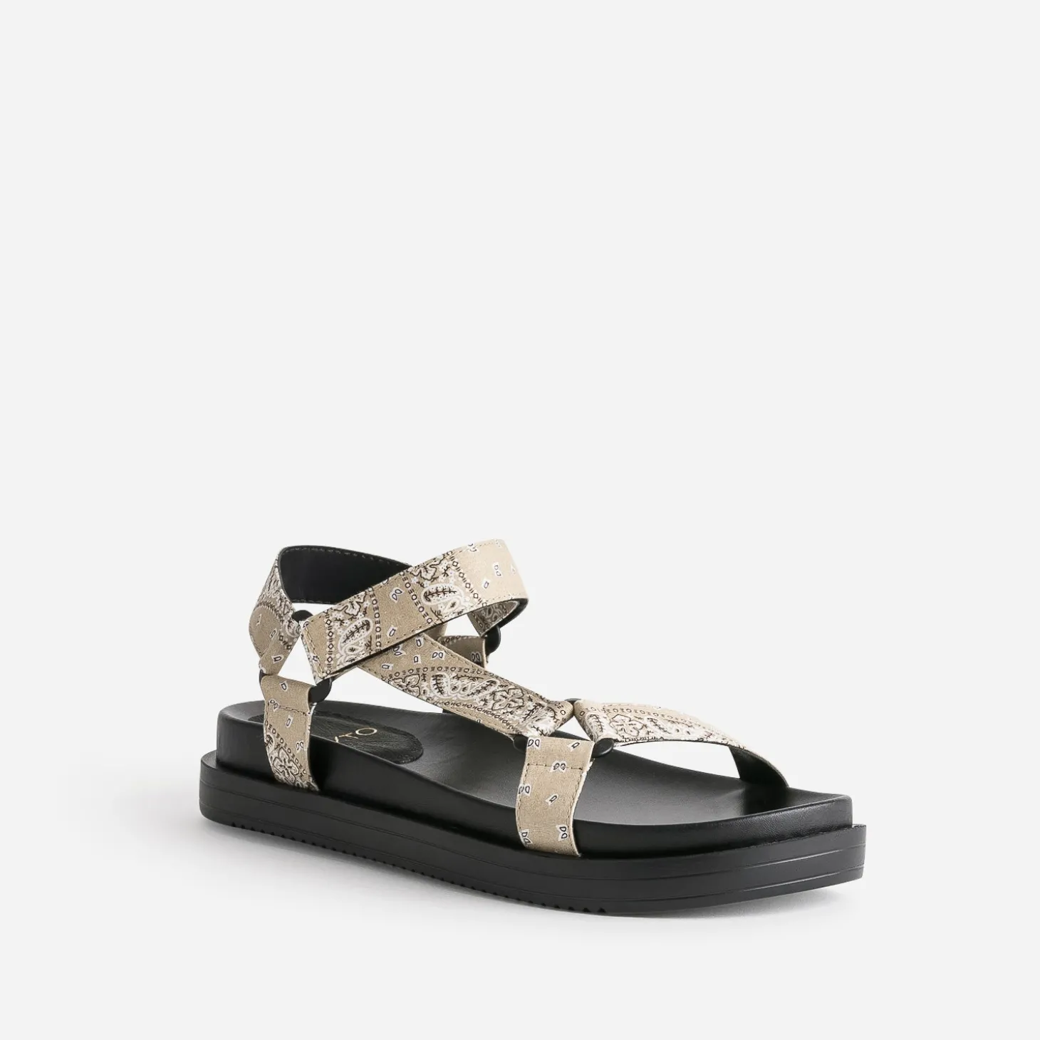 Inspiré par la sandale de trekking, ce modèle de Dad Sandals pour femme séduit d’abord par son confort. Ses brides spécifiques, fermées par scratch, sont recouvertes d’un tissu bandana vintage de couleur beige. Ultra stylée depuis plusieurs saisons, elle appelle un look décontracté, comme un tee-shirt blanc à col rond et manches courtes sur un pantalon large noir plissé.