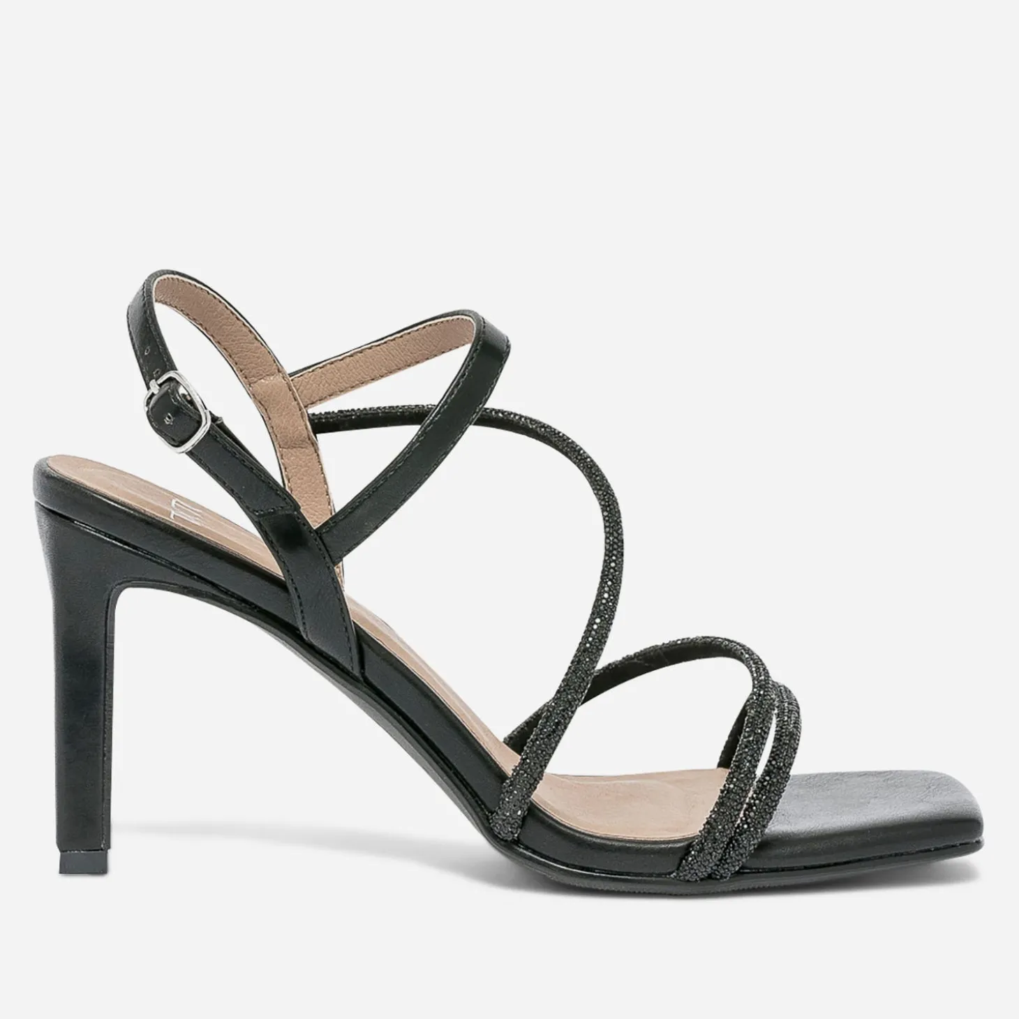 Tenue glam’ chic recommandée avec cette sandale pour femme. Montée sur un haut talon fin et rectangulaire, elle est confectionnée en matière synthétique couleur noire, et féminisée par des fines brides rehaussées de micro-strass ton sur ton. Le bout carré s’inscrit dans la tendance du moment. Un modèle à réserver avec une robe bustier ou longue, esprit fourreau.