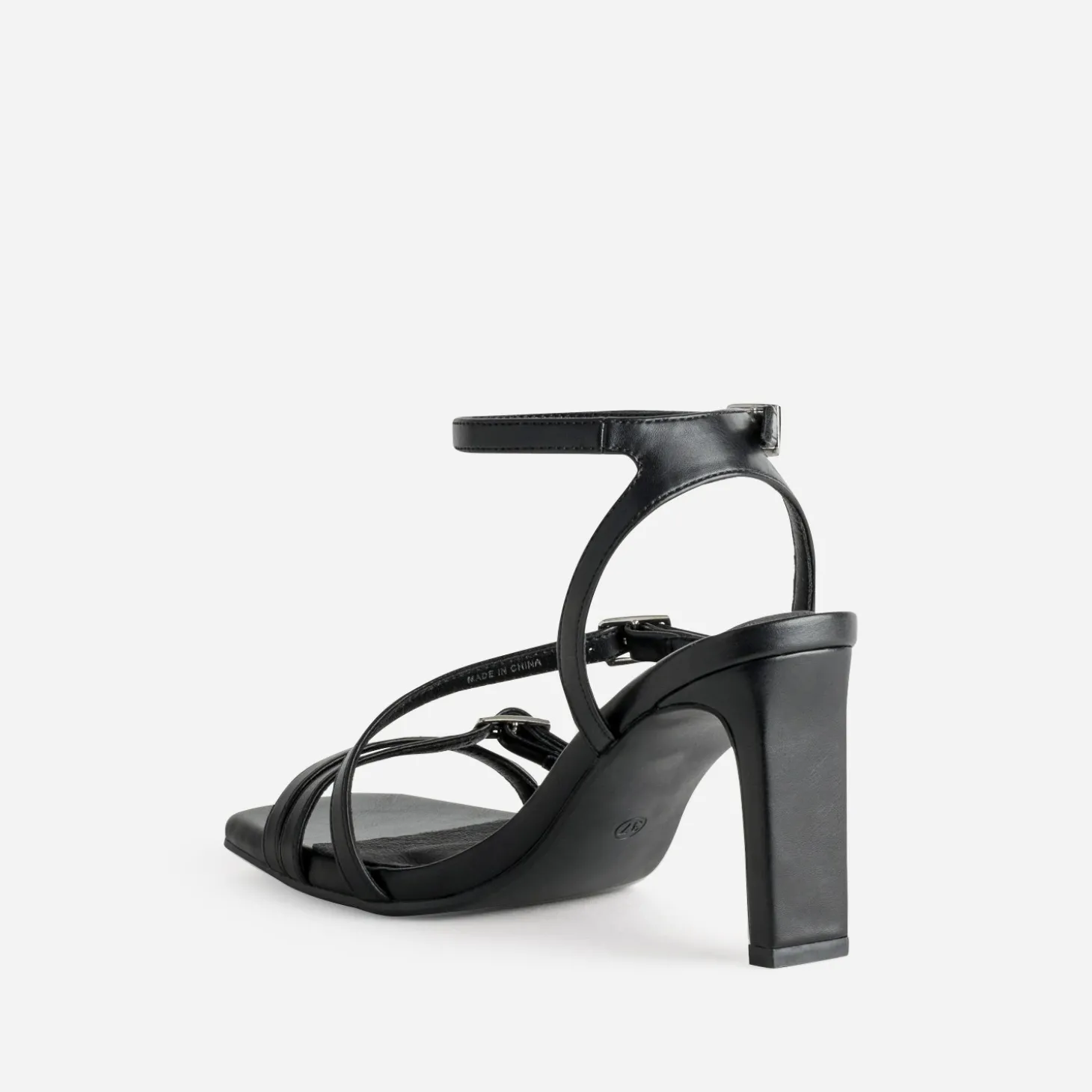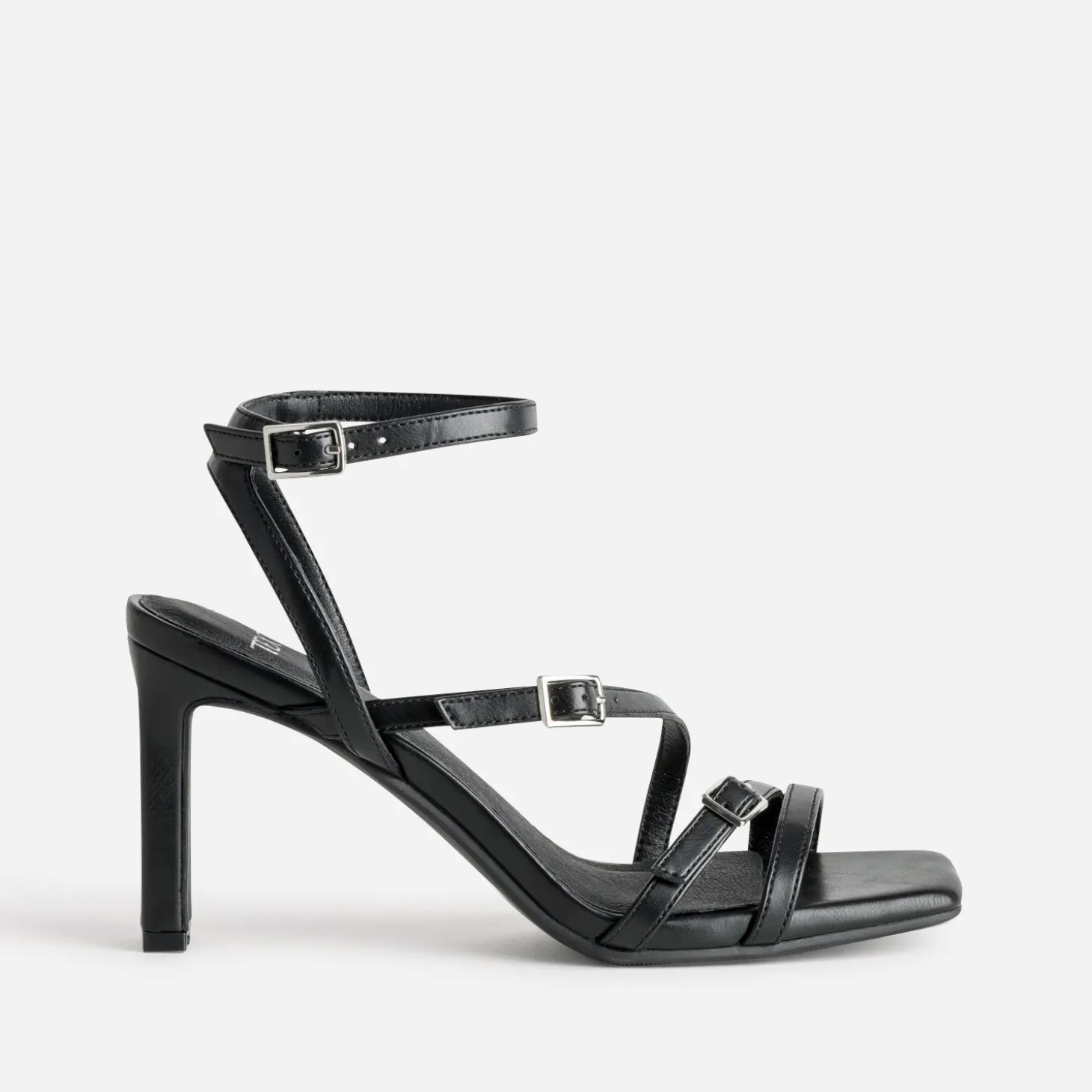Vous aimez les boots noirs en hiver ? Vous allez adorer la version sandale cet été. Montée sur un talon haut, elle se démarque par un bout carré et quatre fines brides, dont trois ajustables par boucle. L’imprimé animalier s’invite sur un fond marron, jusqu’à la pointe du talon. Un modèle très mode, à privilégier avec une tenue monochrome, noire ou beige, ou même taupe.
